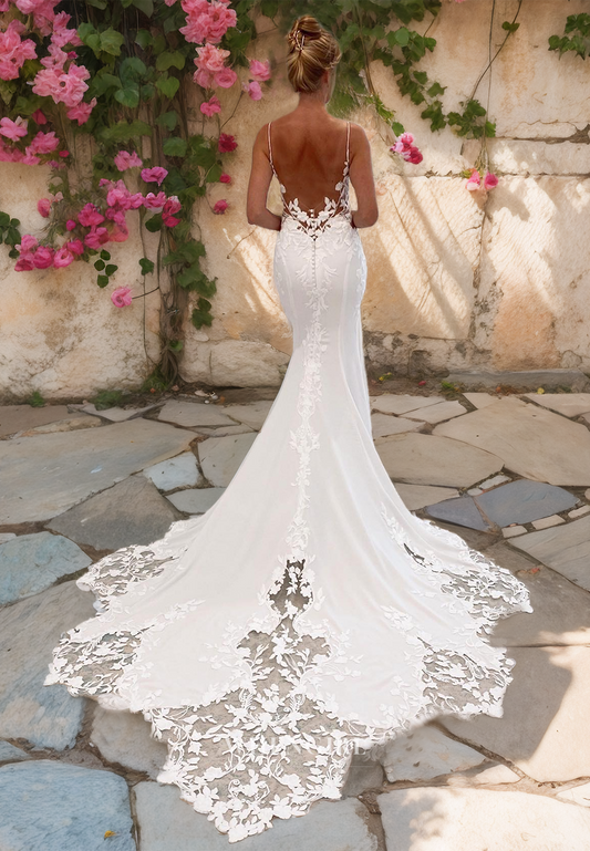 Spaghetti Straps Mermaid Wedding Dress Sleeveless Appliques Satin Bridal Gowns with Court Train