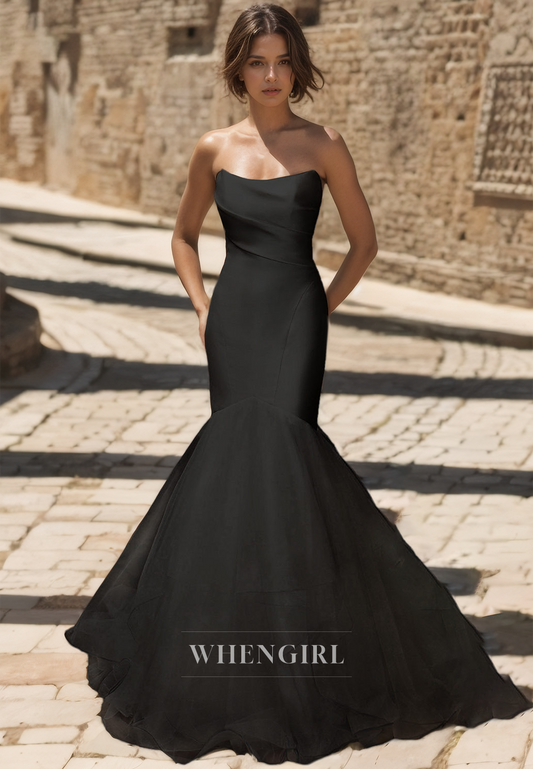 Sweetheart Mermaid Wedding Dress Sleeveless Ruched Satin Bridal Dress with Lace Sweep Train