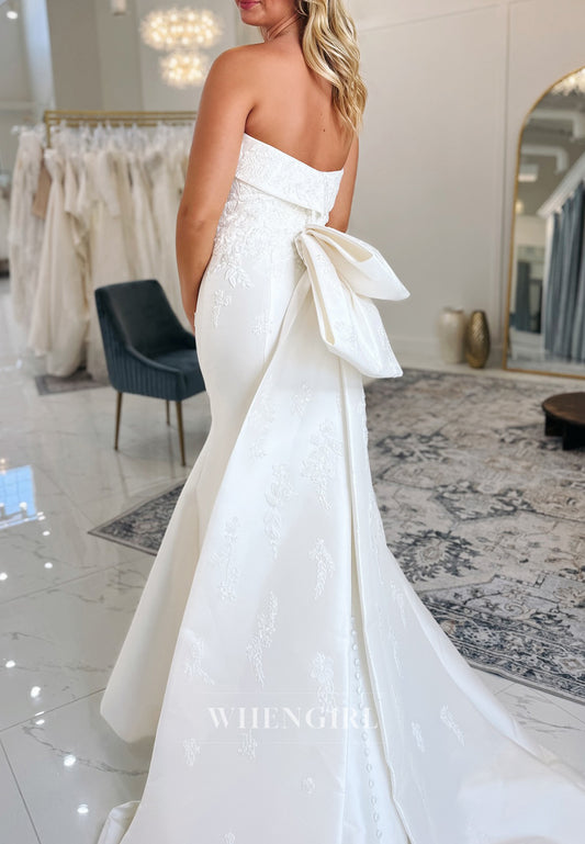 Tube Top Embroidery Beaded Bowknot Sweep Trian Mermaid Wedding Dress