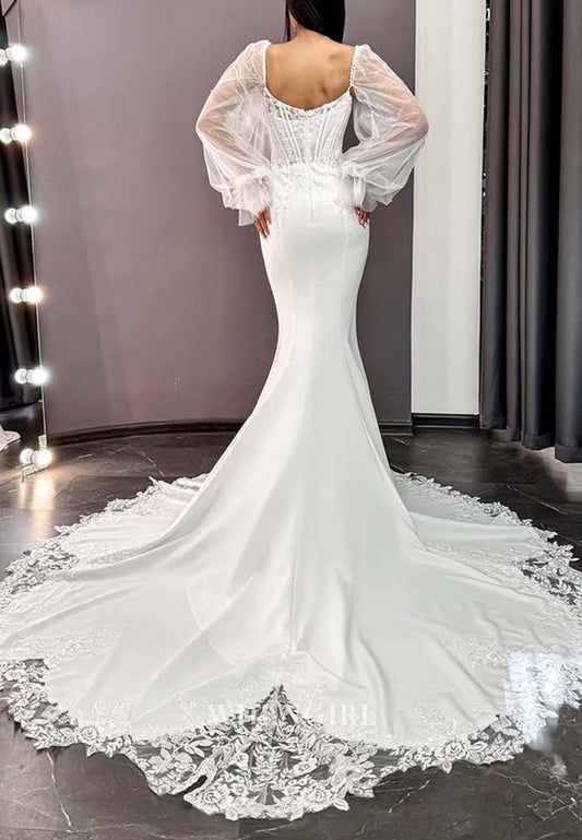 Sweetheart Long Sleeves Appliqued Lace Back Zipper Court Train Mermaid Wedding Dress