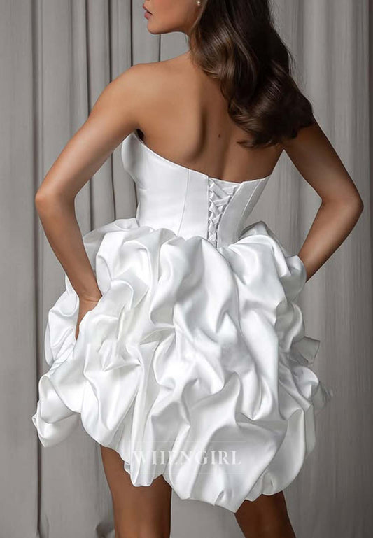Beaded Sweetheart Straps Sleeveless A-Line Bubble Hem Short Wedding Dress