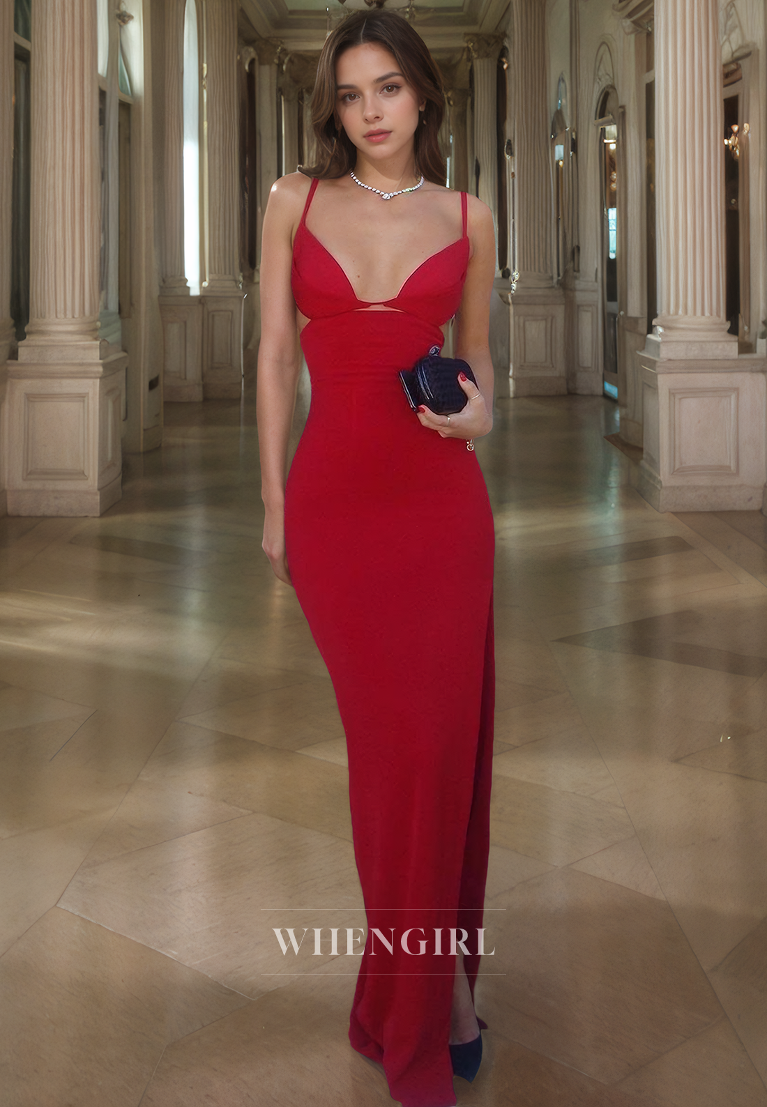 Sheath Strapless Straps Sleeveless Long Party Prom Dress with Slit