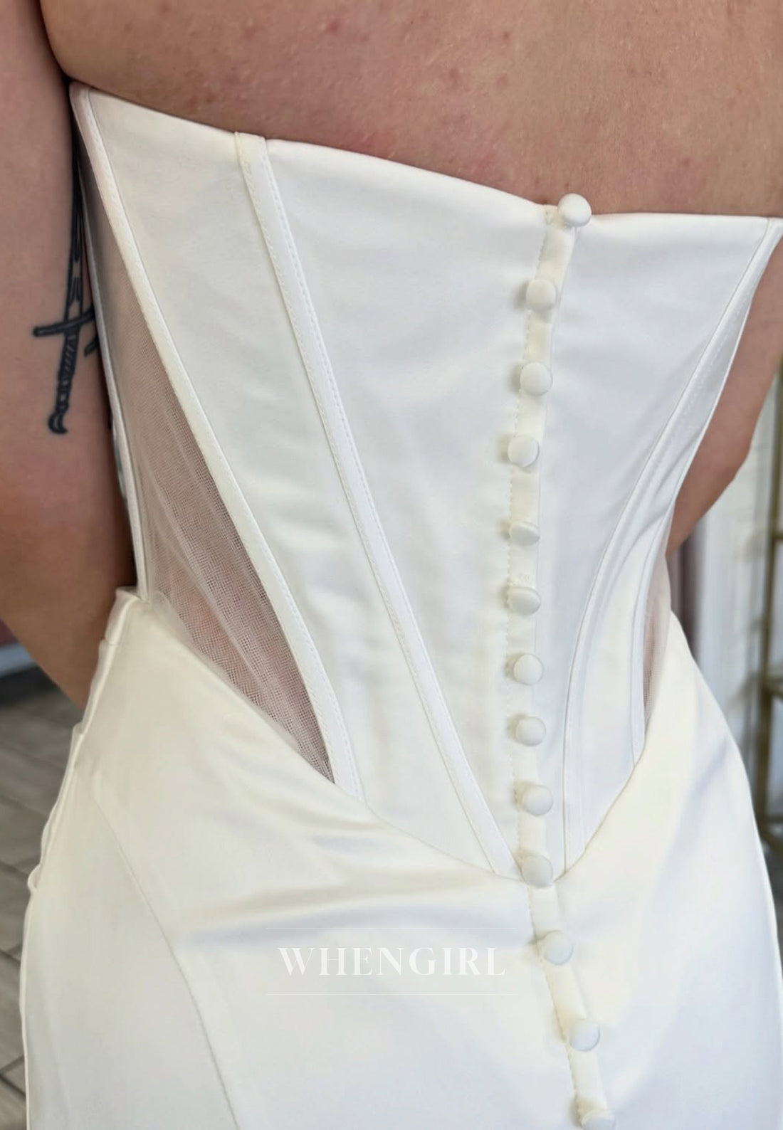 Simple Mermaid Sleeveless Sweetheart Court Train Wedding Dress