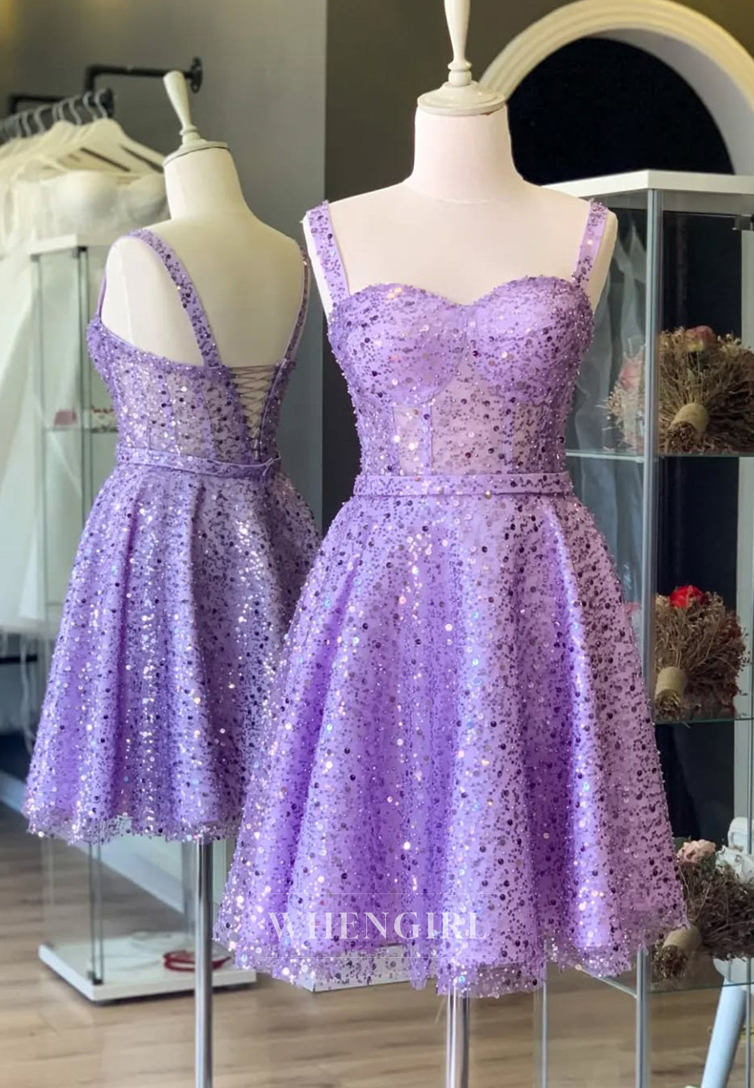 A-Line Sweetheart Sleeveless Beaded Short Homecoming Dress