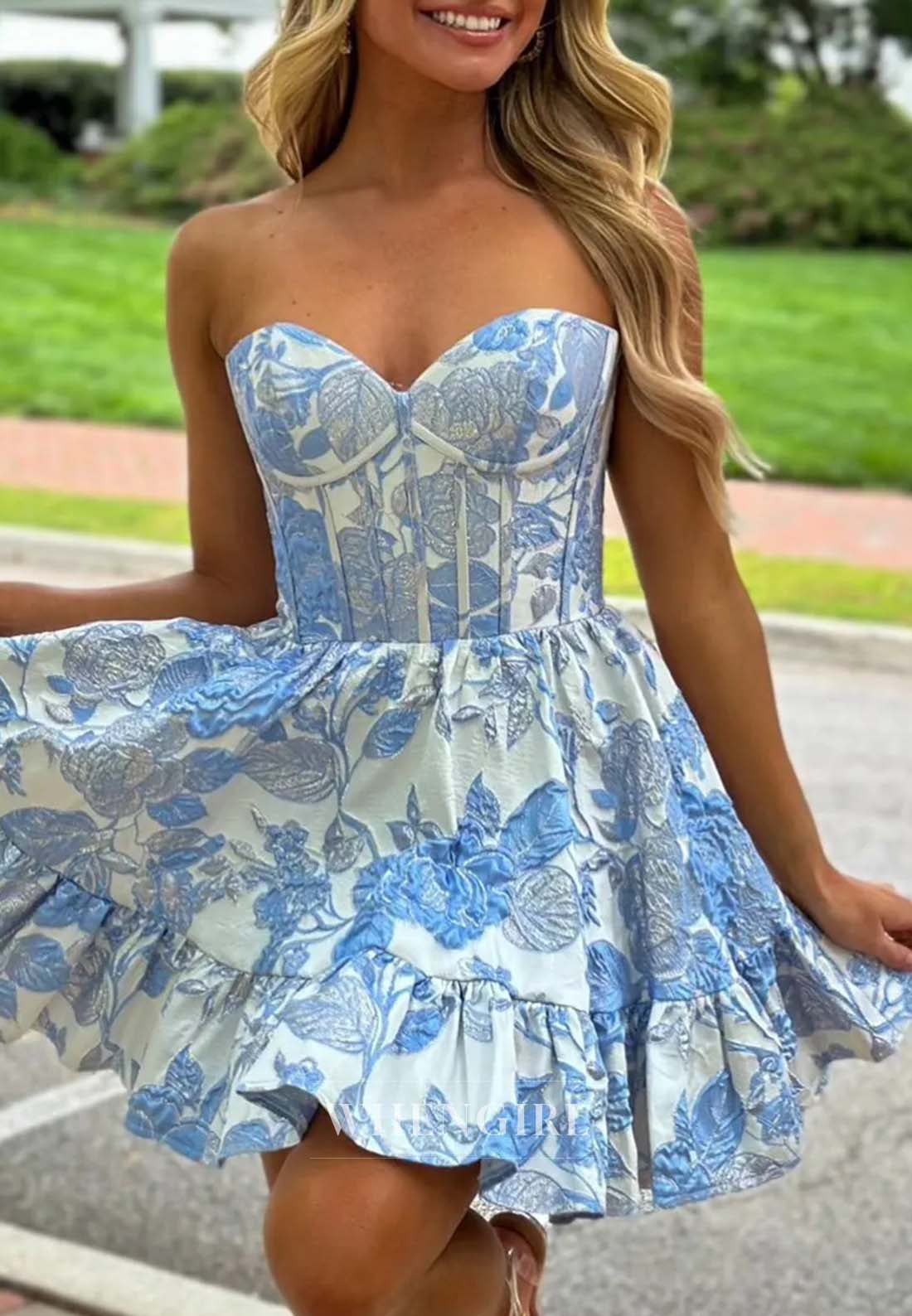 A-Line Flower Pinted Sweetheart Sleeveless Strapless Short Homecoming Dress