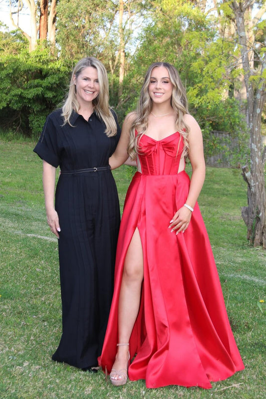 A Line V Neck Satin Prom Dresses Long Floral Print Backless Evening Gowns