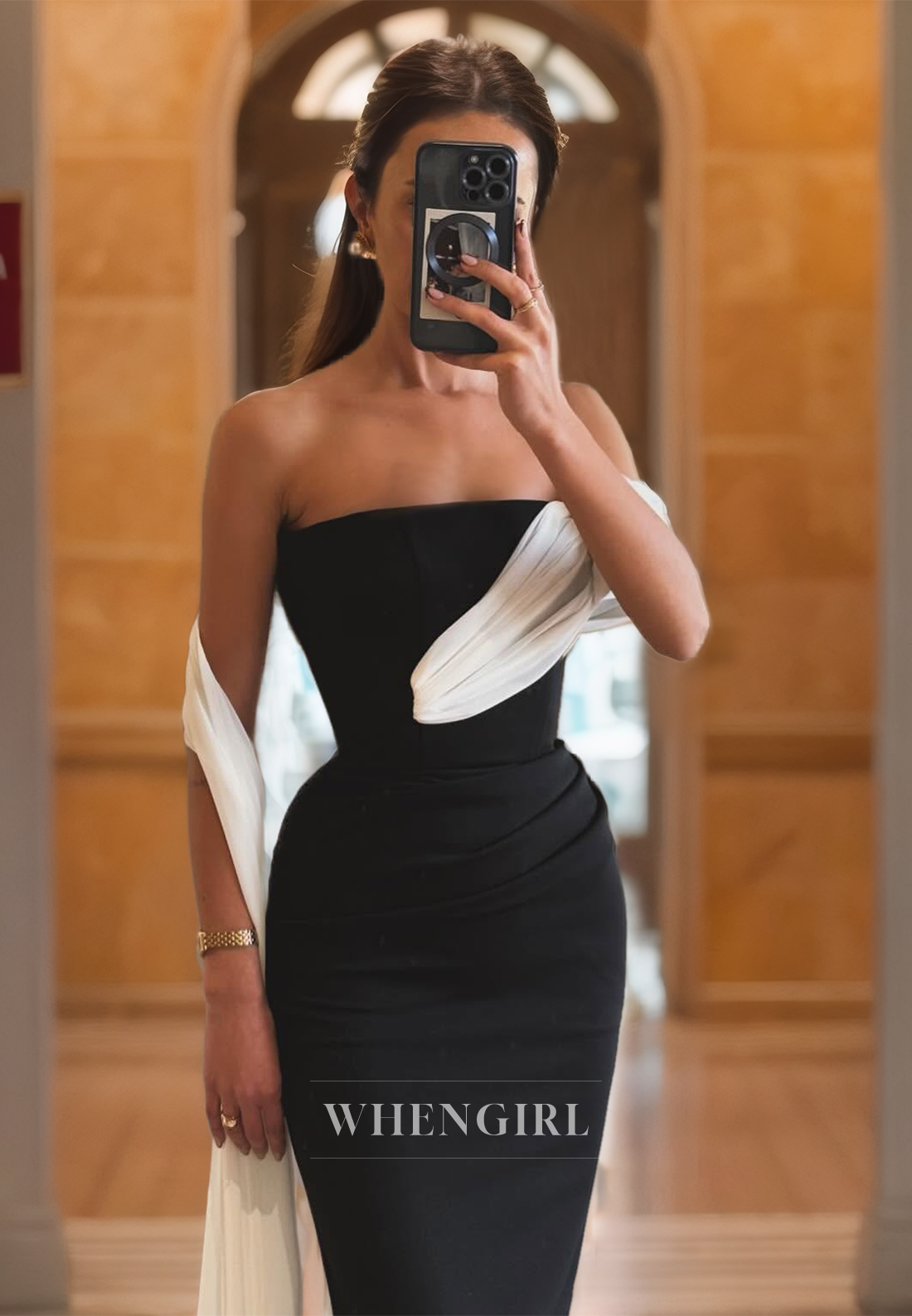 Tube Top Sheath Formal Gowns High Split Sleeveless Floor-Length Satin Prom Dress with Pleated