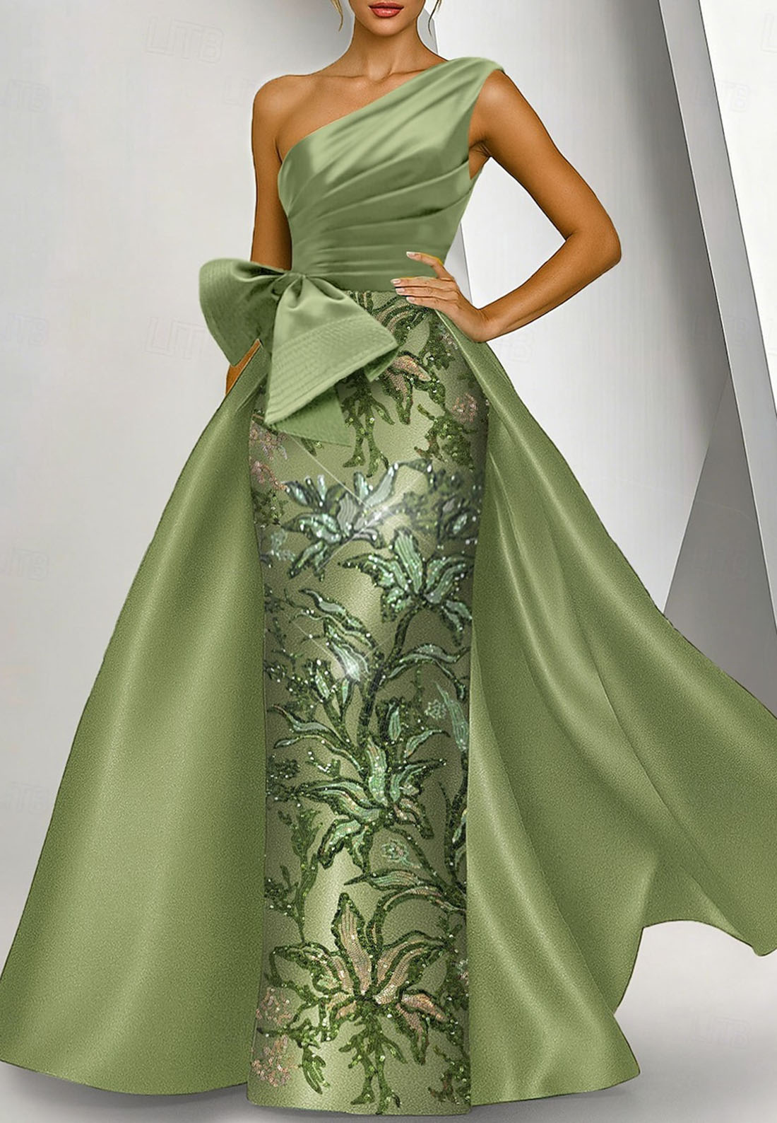 Elegant and sophisticated, this column one-shoulder mother of the bride dress features intricate embroidery and delicate beadwork throughout. The sleek silhouette flatters all figures while the asymmetrical neckline adds modern flair. Perfect for weddings and formal celebrations, this timeless piece combines classic styling with refined details. Available in multiple sizes to ensure the perfect fit for your special day.
