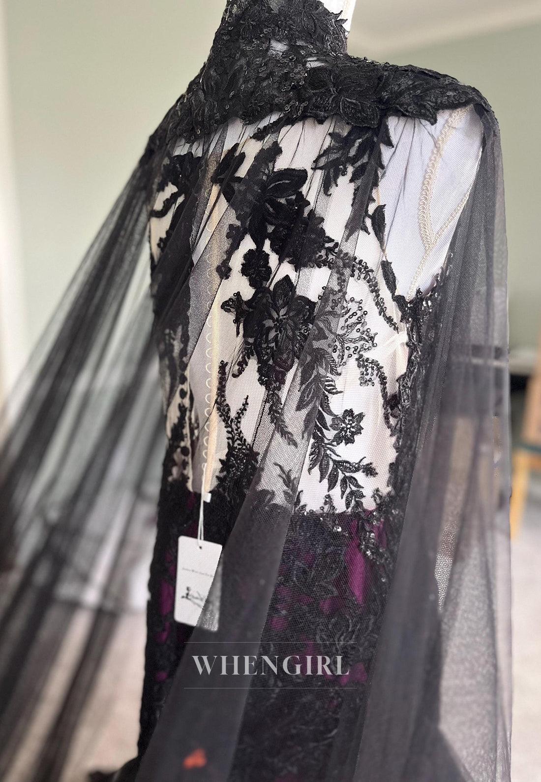 This sophisticated mermaid wedding dress showcases intricate appliqued lace and a sleeveless design for a timeless silhouette. Its detachable high neck offers versatile elegance, while the court train adds a graceful finish, perfect for a refined bridal look.
