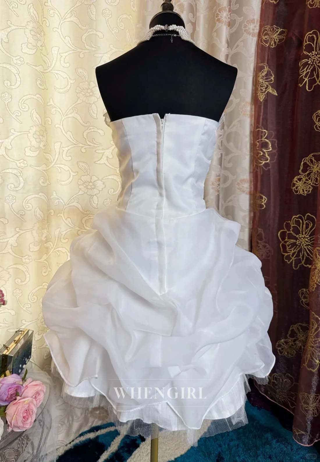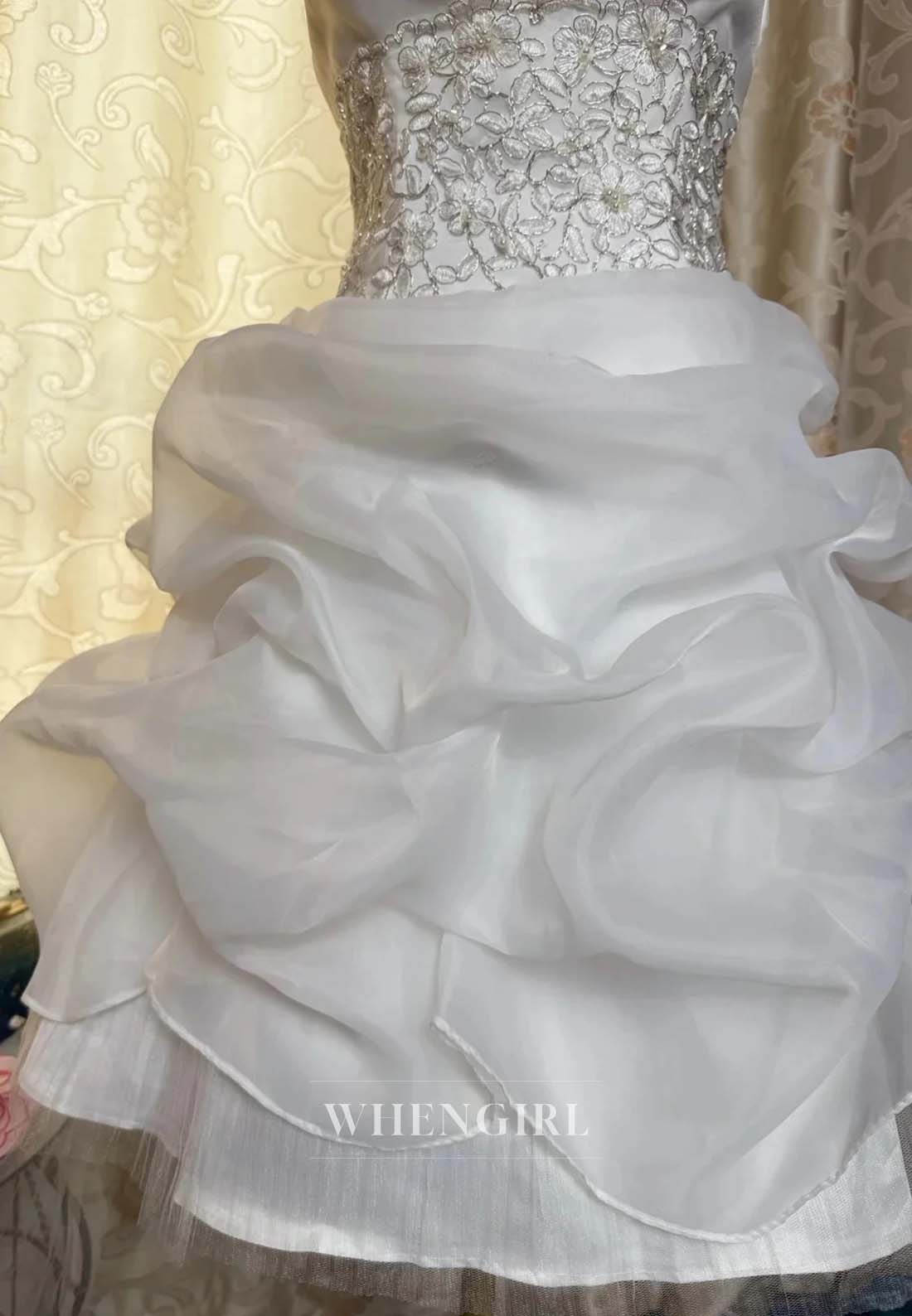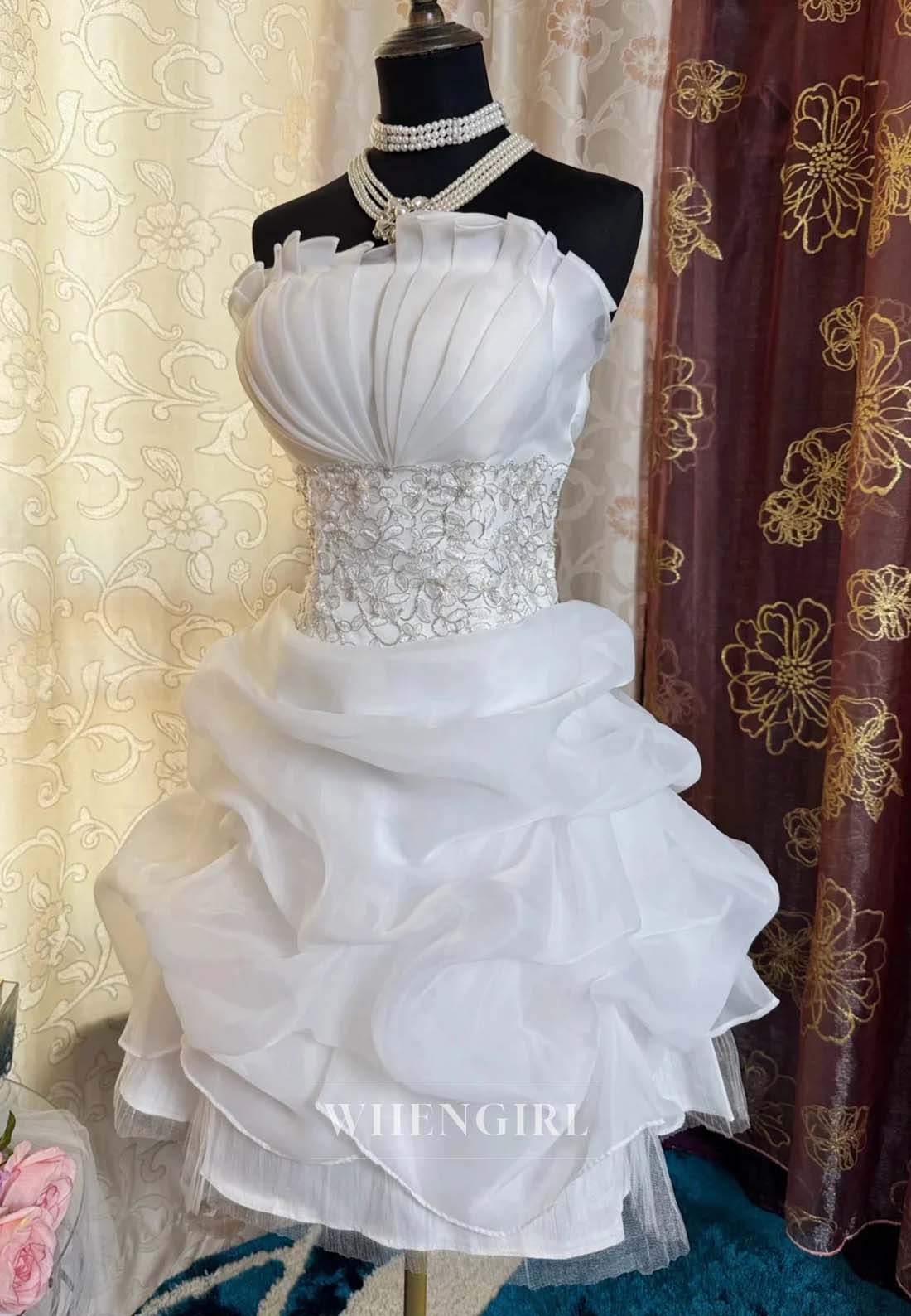 Beige Tube Top Sleeveless Embroidery Sheath Pleated Short Homecoming Dress