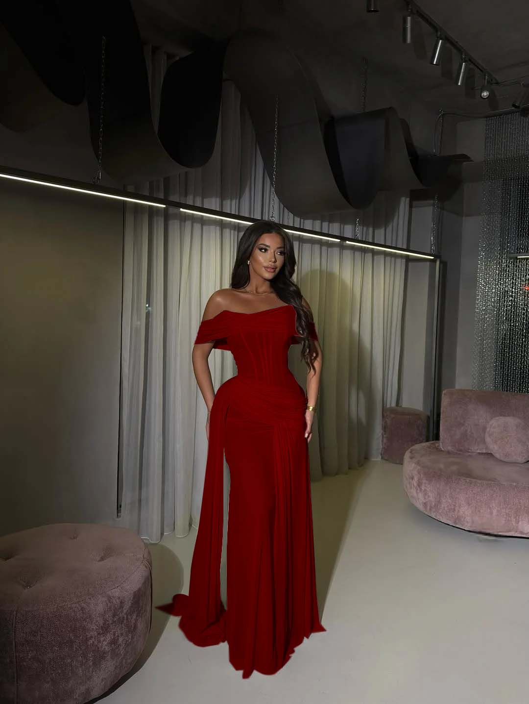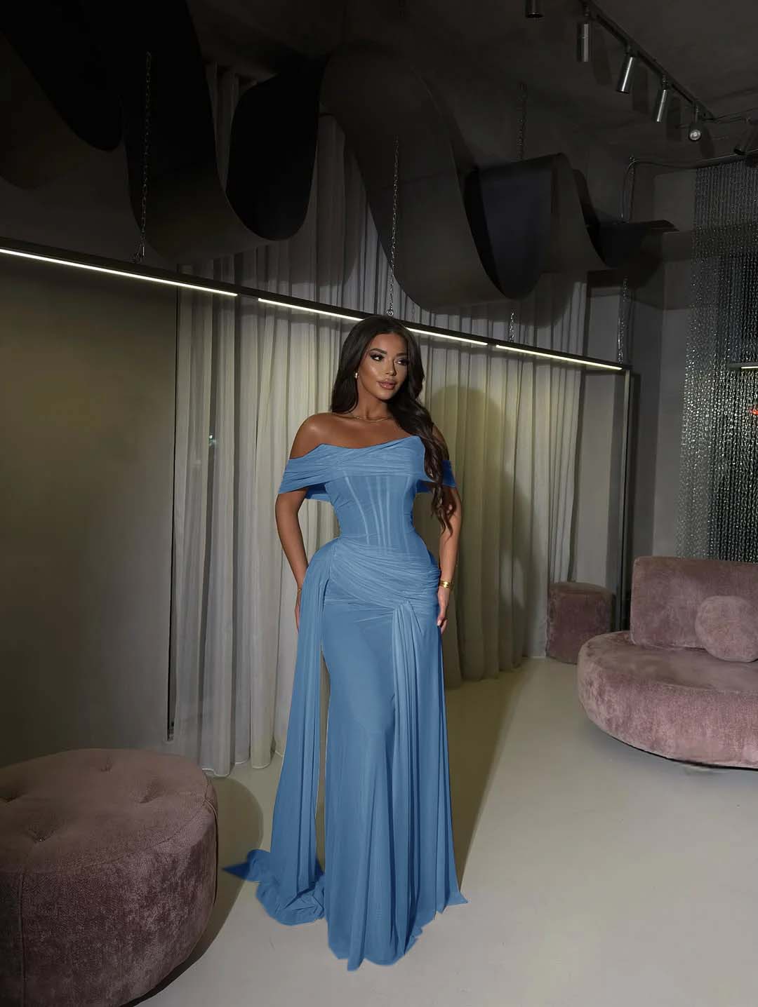 Step into the spotlight in this enchanting blushing pink prom dress that's pure romance from every angle. The off-the-shoulder neckline frames your face beautifully while the expertly pleated bodice creates stunning dimension and movement. Flowing gracefully to the floor, this gown strikes the perfect balance between elegant and effortlessly chic. Whether you're dancing the night away or making a grand entrance, you'll feel like the main character in your own fairy tale. This is the dress that turns heads and creates memories.