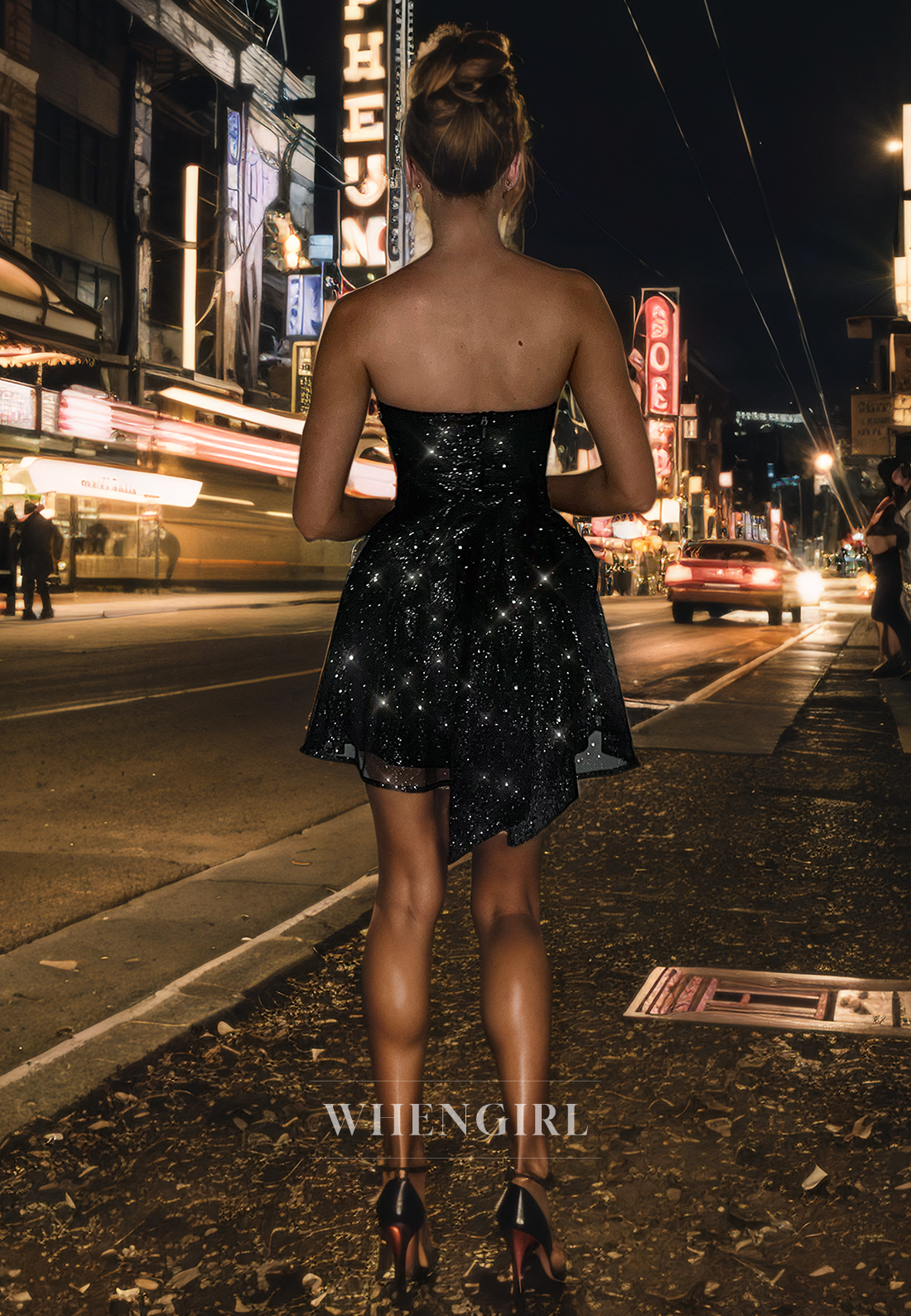 This A-Line Strapless Sleeveless dress is perfect for any homecoming event. With its pleated back and delicate bow knot, it exudes elegance and charm. The strapless and sleeveless design adds a touch of sophistication, while the zipper closure ensures a secure and comfortable fit. Make a statement with this stunning dress.