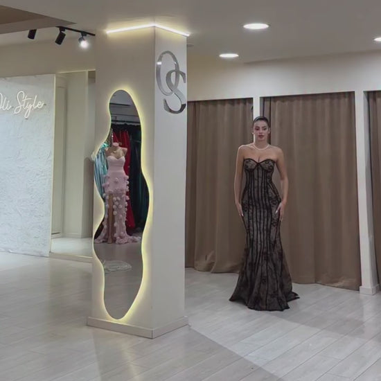 Captivate hearts in this romantic mermaid gown featuring a classic sweetheart neckline. The sleeveless design elegantly frames your shoulders and décolletage, while the fitted bodice curves beautifully to your silhouette. The dramatic mermaid cut hugs your figure before flaring into a stunning sweep train that creates movement and presence. Perfect for weddings, formal galas, and unforgettable celebrations, this dress combines timeless romance with sophisticated style. Feel absolutely radiant and confident as you make your grand entrance in a gown designed to make you feel like your most beautiful self.