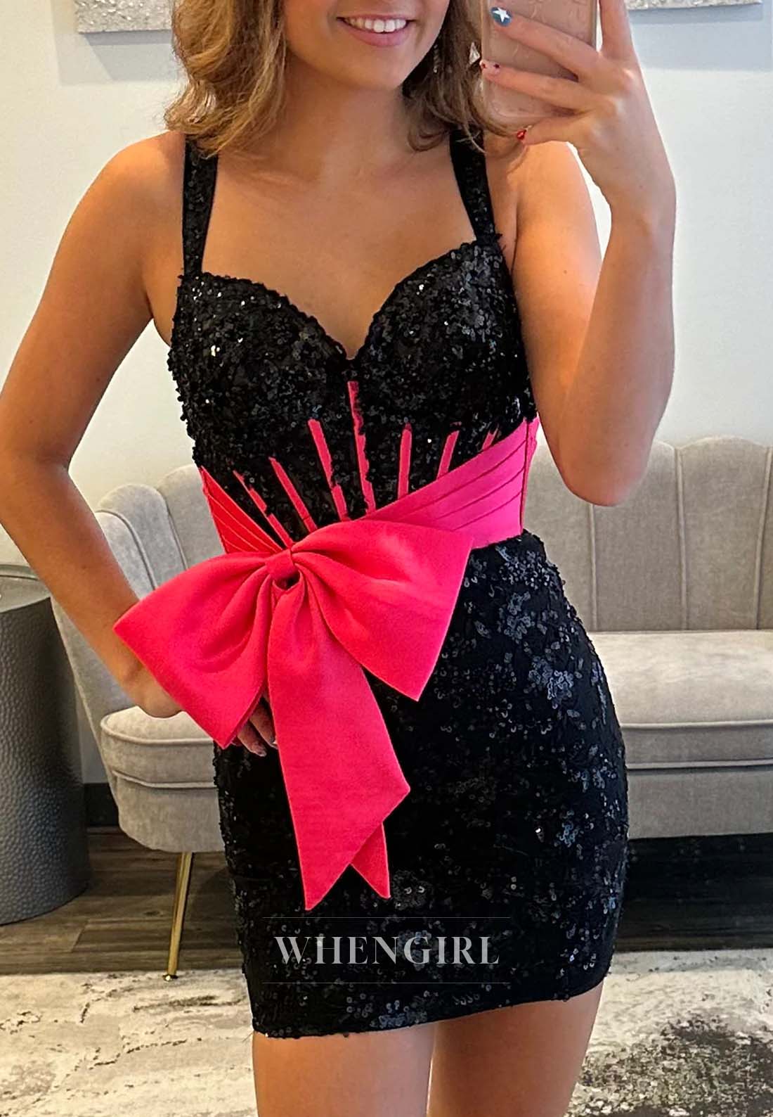 Sweetheart Beaded Back Zipper Sheath Bowknot Sleeveless Short Homecoming Dress x 1;
