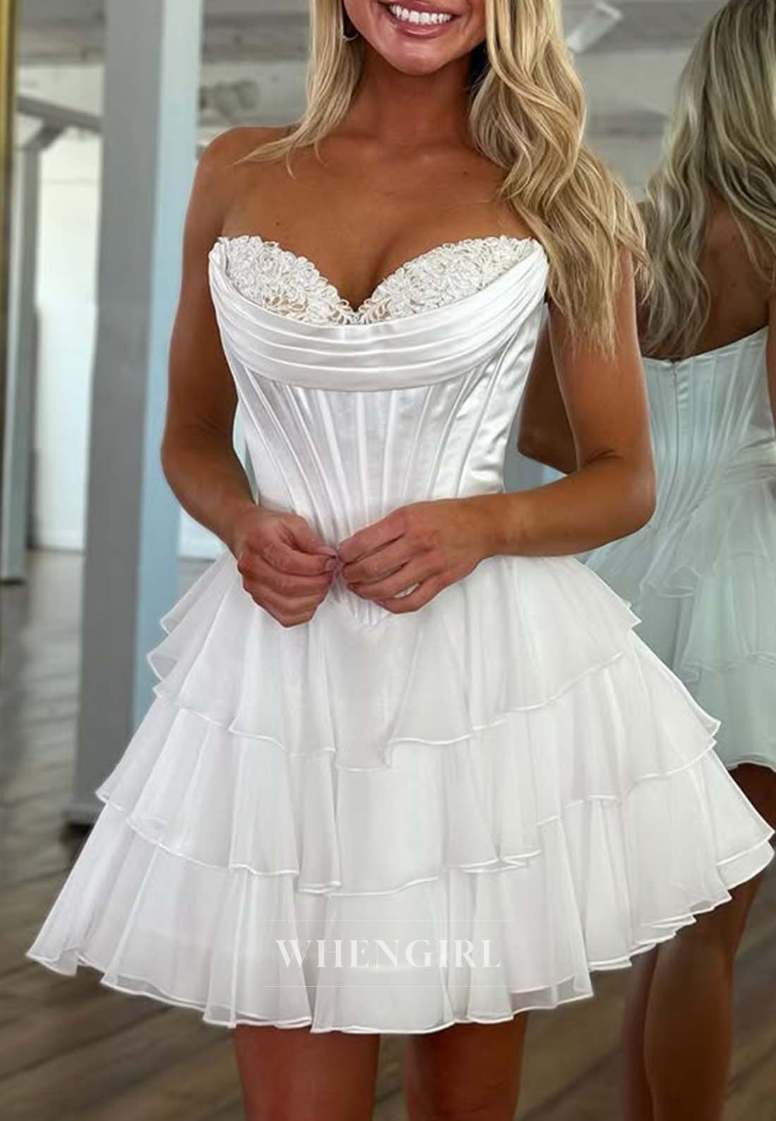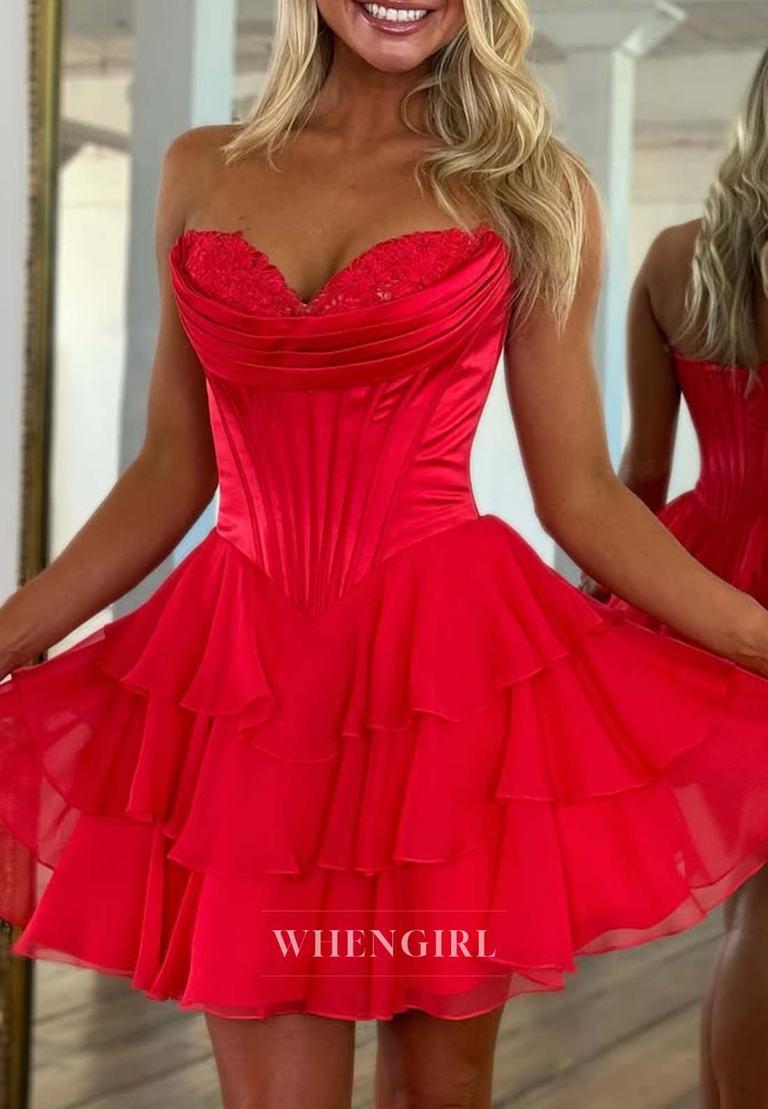 This sweetheart neckline, sleeveless A-line dress features pleated, multi-tiered ruffles that add texture and movement to your homecoming look. Its short length ensures comfort and ease, helping you feel confident and graceful throughout your special night. Perfect for a charming and elegant celebration.