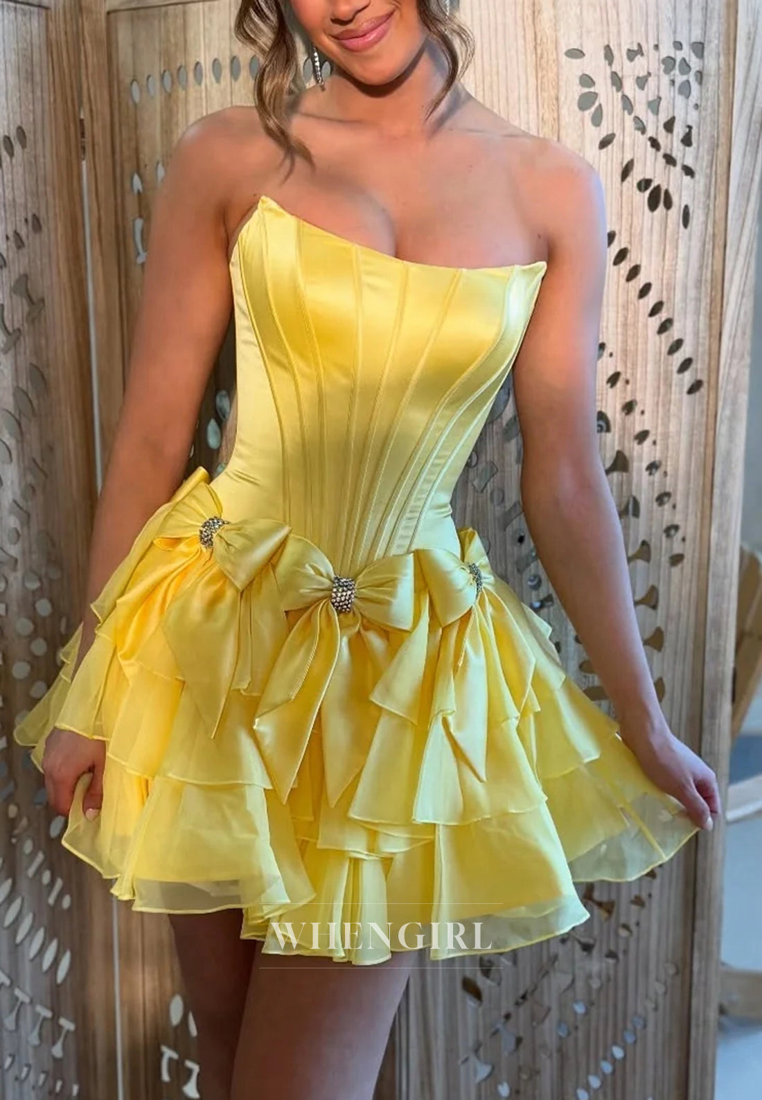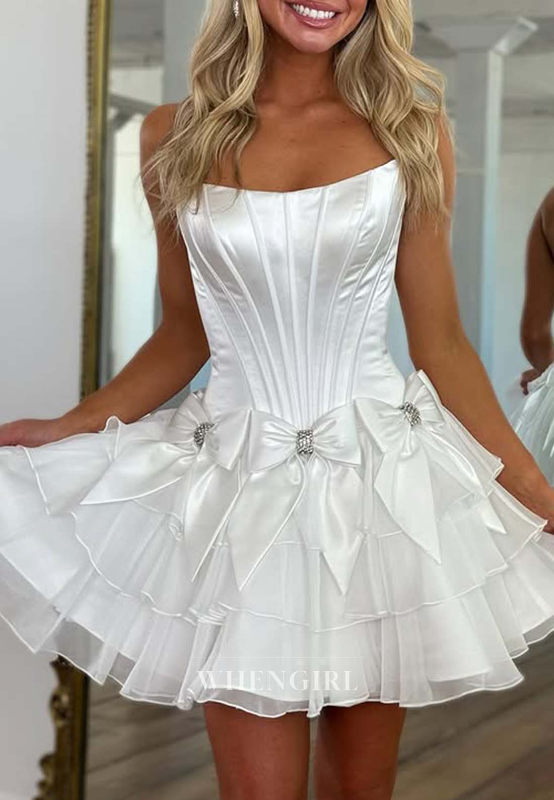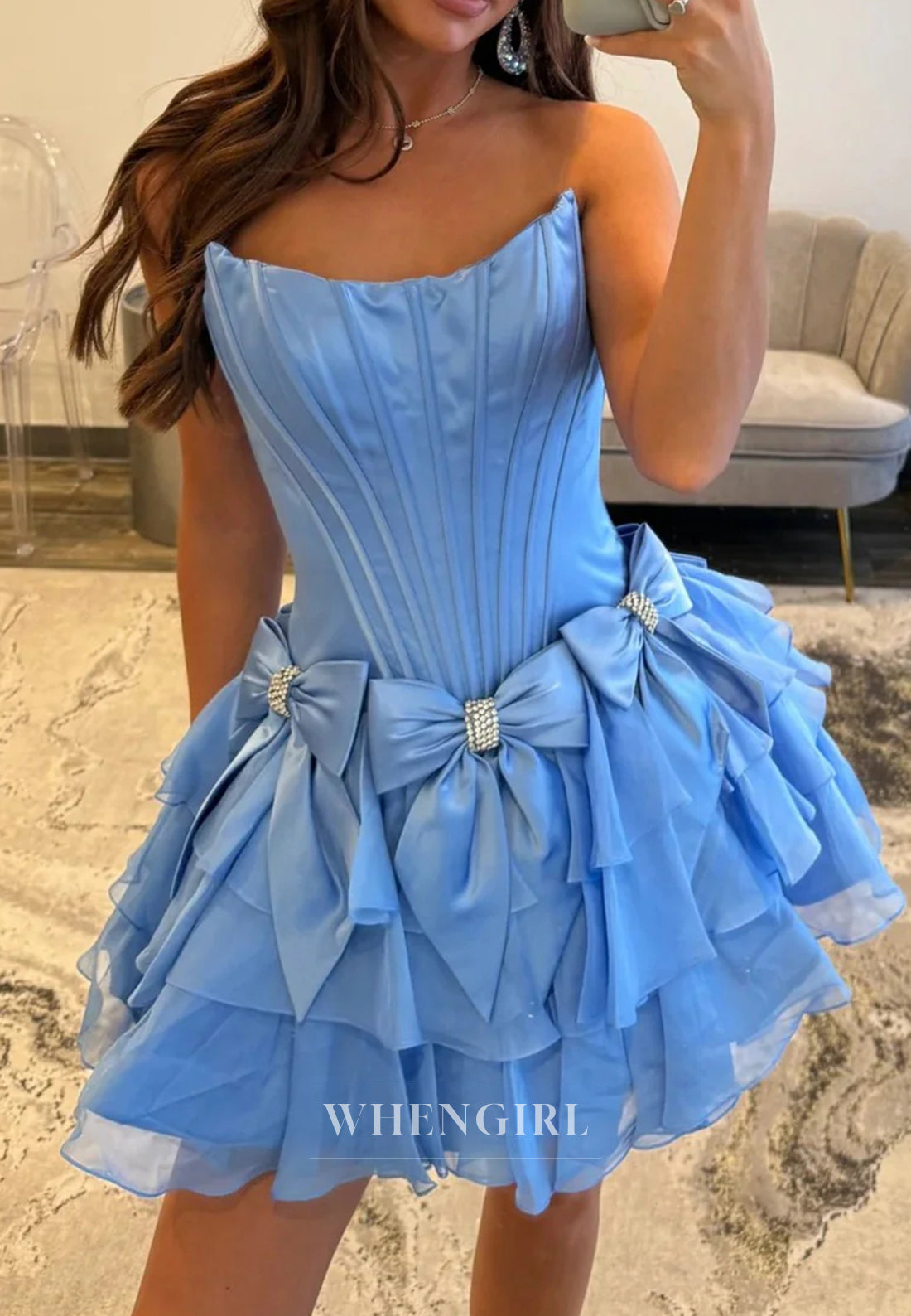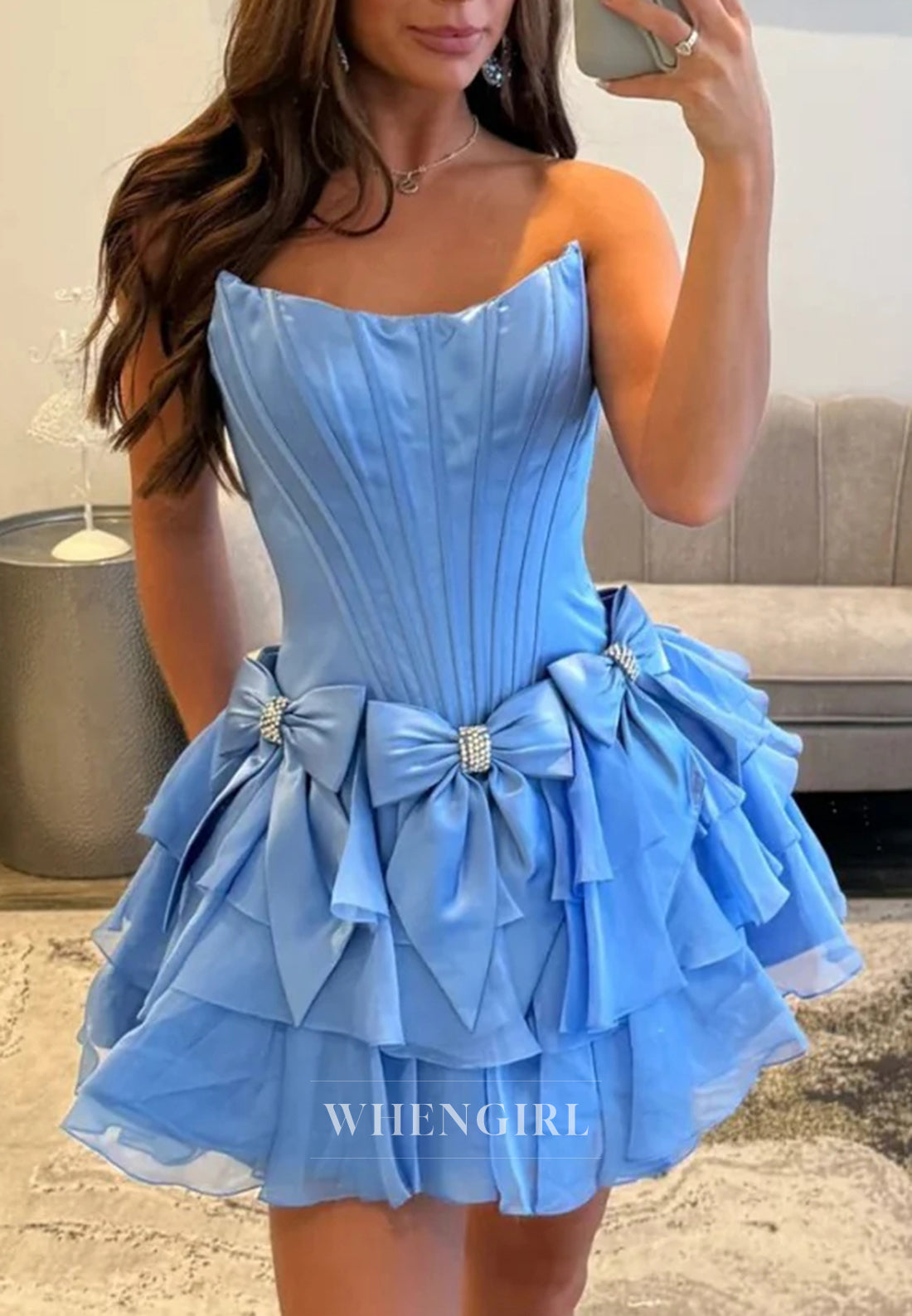 Sleeveless Ruffles Bowknot Strapless Short A-Line Homecoming Dress