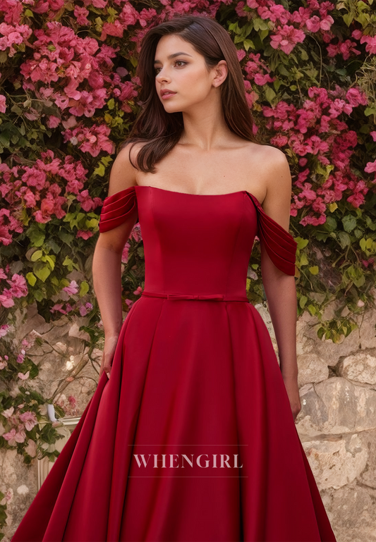 A-Line Off-Shoulder Sweetheart Floor-Length Satin Mother of Groom Cocktail Dress with Pleats