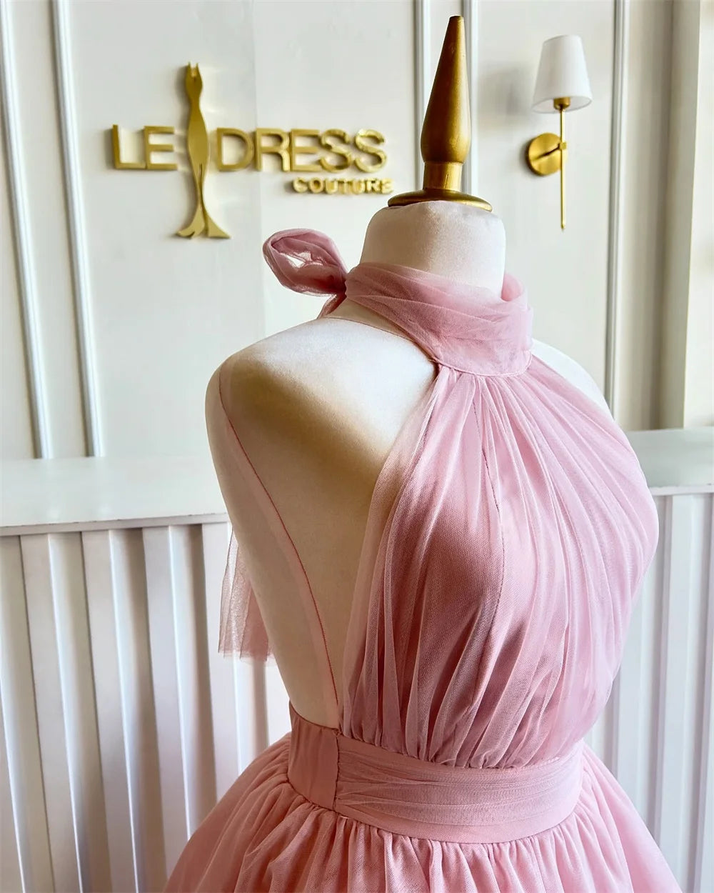 Step out in style with the Bella Customized Multi-Layered A-line Mesh Fabric robes de soirée Halter Neck Sleeveless Party Dresses Ankle-Length Prom Dress. Designed with a flattering A-line silhouette, this dress features a halter neck and sleeveless design for a trendy and modern look. The multi-layered mesh fabric adds depth and texture, making it perfect for any formal occasion. With its ankle-length cut, you'll be sure to turn heads wherever you go. Elevate your wardrobe with this stunning dress today.