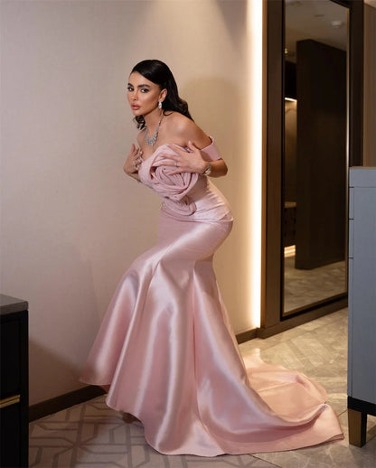 Customized Pink Off Shoulder 3D Flower Prom Dresses Sleeveless Mermaid Evening Dress