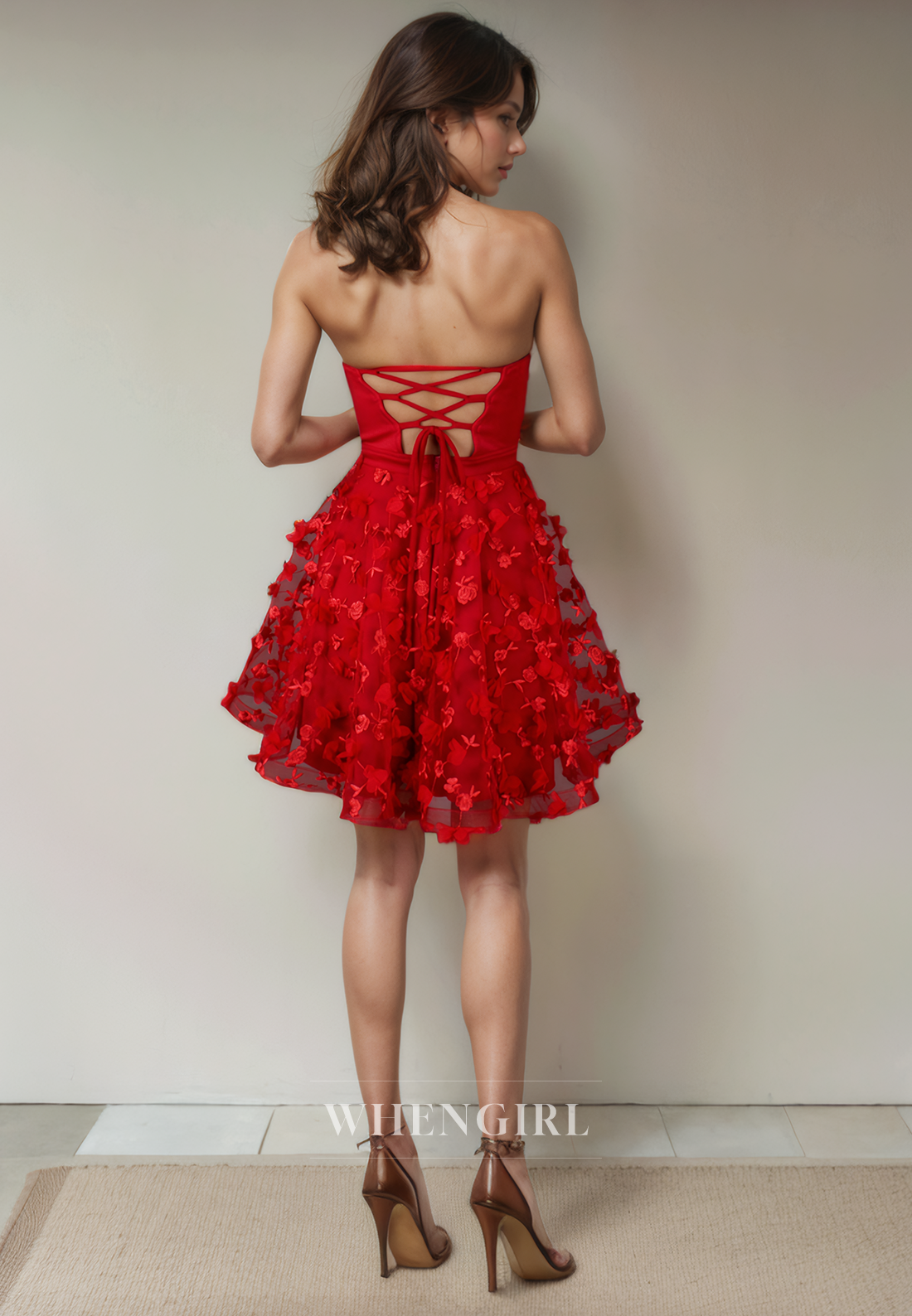 A-Line Strapless Sleeveless Appliques Criss Cross Straps Homecoming Dress