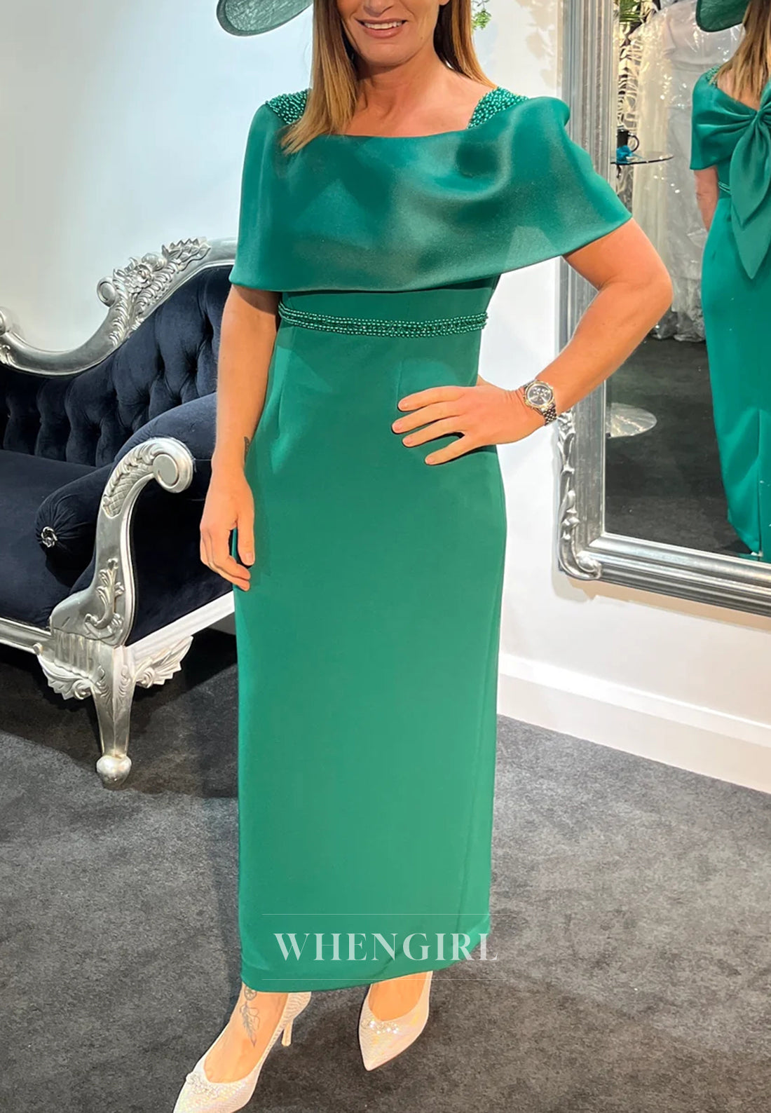 Celebrate beautifully in this elegant sheath mother of the bride dress that makes you feel supported and radiant. The refined square neckline creates a sophisticated, flattering frame while short sleeves offer comfortable, modest coverage. Delicate beading adds shimmer and glamour, catching the light as you celebrate alongside the bride. A charming bowknot detail provides a sweet, personal touch that shows thoughtfulness in every design element. The fitted sheath silhouette is expertly tailored to flatter your figure and enhance your natural beauty. This dress empowers you to feel confident, cherished, and absolutely lovely—allowing you to celebrate your important role with grace and style while looking your very best throughout this meaningful occasion.