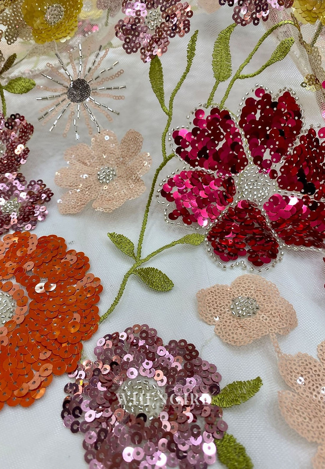 Sheath 3/4 Sleeves Floral Beaded Mother of the Bride Dress with Train x 1;