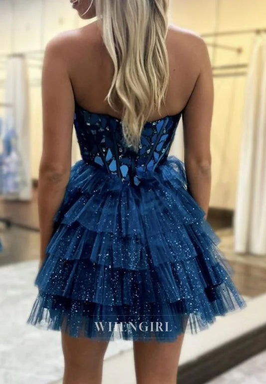 Sweetheart Sleeveless Multi Tiered Back Zipper Cut Glass Mirro Short A-Line Homecoming Dress
