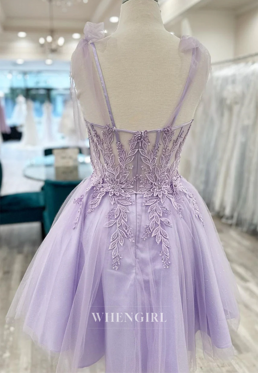 Lilac Appliqued Sweetheart Sleeveless A-Line Tulle Back Zipper Homecoming Dress