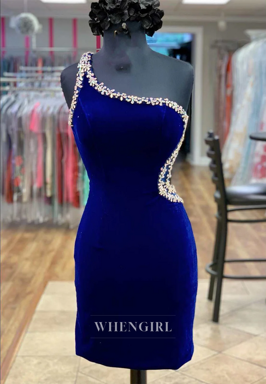 Sheath Velvet One Shoulder Beaded Cut Out Back Sleeveless Short Homecoming Dress
