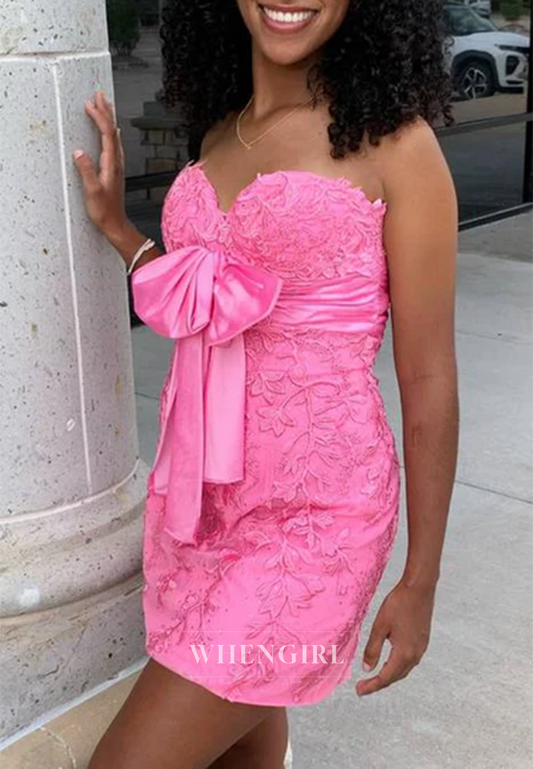 Sheath Bowknot Floral Sleeveless Appliqued Short Homecoming Dress