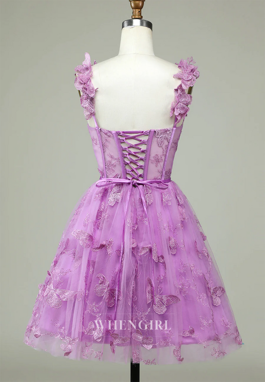 Purple Sweetheart Sleeveless Appliqued Butterfly Tulle A-Line Lace Up Homecoming Dress