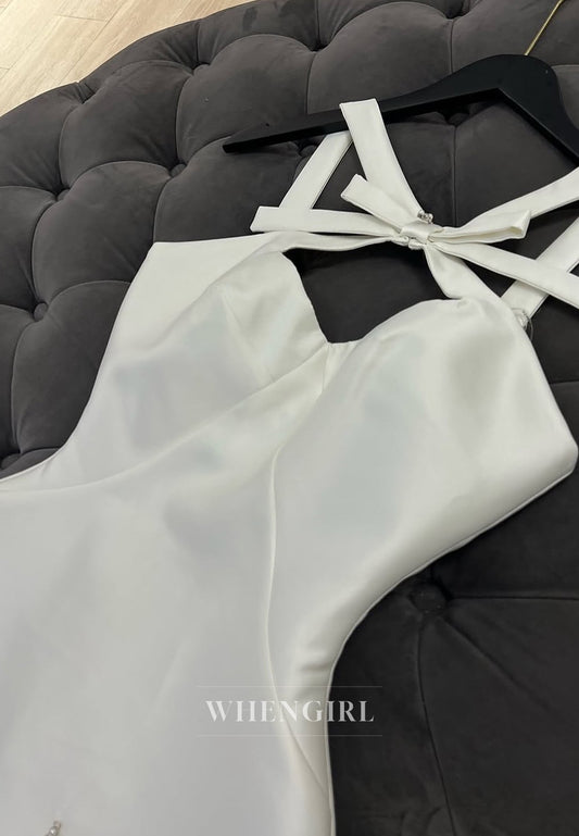 Ivory Sheath Cross Neck Bowknot Beaded Satin Short Homecoming Dress