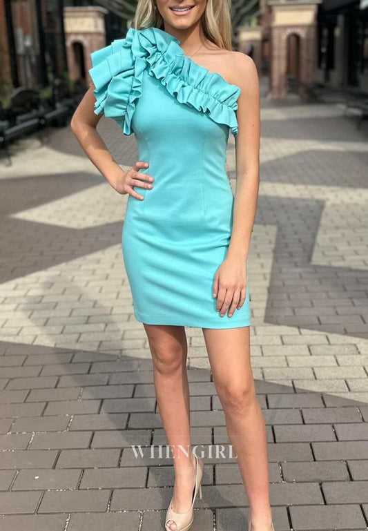 Ocean Blue One Shoulder Ruched 3D Flowers Sheath Short Homecoming DressOrdinarie pris Från $163.00 USDOrdinarie prisEnhetspris / per-