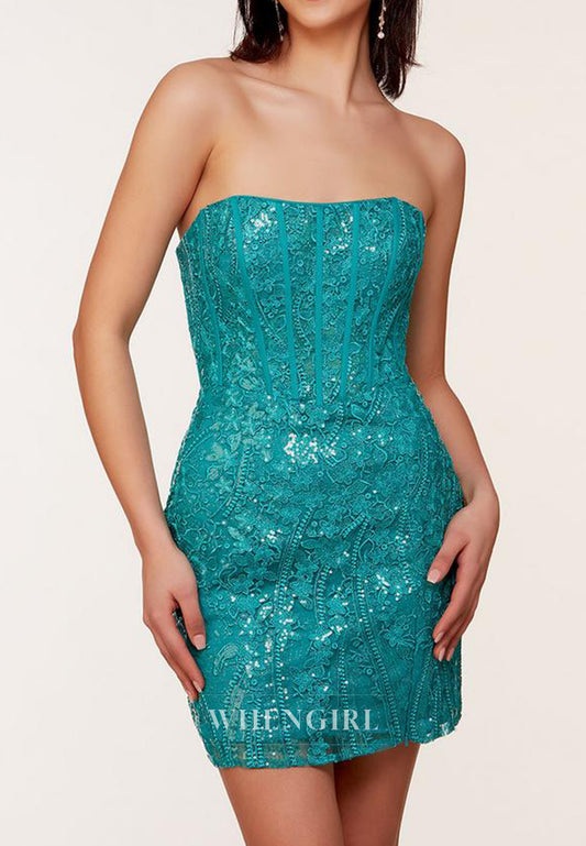 Tube Top Side Slit Strapless Sequins Beading Corset Homecoming DressOrdinarie pris Från $138.00 USDOrdinarie prisEnhetspris / per-