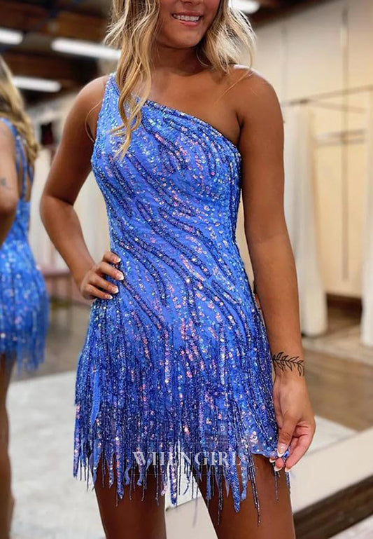 One Shoudler Sequins Beading Sheath Tassels Short Homecoming DressOrdinarie pris Från $168.00 USDOrdinarie prisEnhetspris / per-