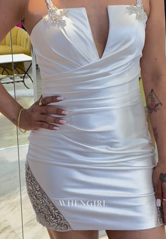 White V Neck Sleeveless Beaded Straps Back Zipper Sheath Pleated Short Homecoming DressOrdinarie pris Från $173.00 USDOrdinarie prisEnhetspris / per-