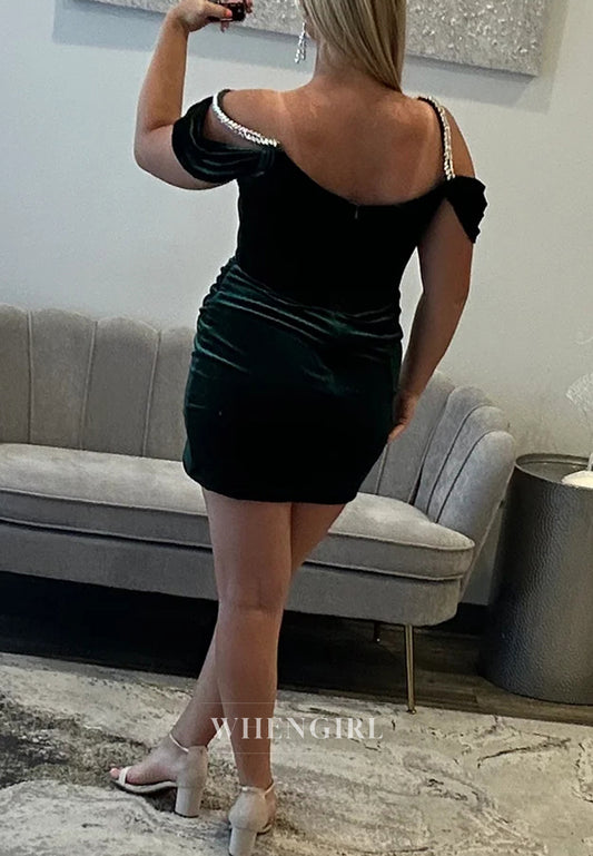 Dark Green Diamond Beading V Neck Sleeveless Side Slit Sheath Back Zipper Short Homecoming DressOrdinarie pris Från $145.00 USDOrdinarie prisEnhetspris / per-
