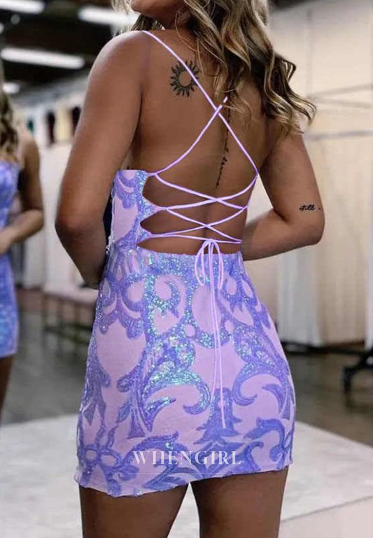 Lavender Spaghetti Straps Sequins Beading Sheath Lace Up Short Homecoming DressOrdinarie pris Från $142.00 USDOrdinarie prisEnhetspris / per-