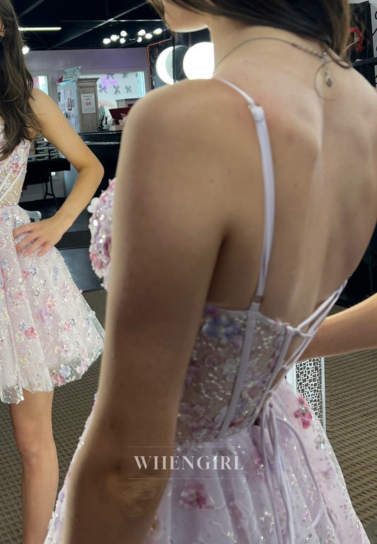 Floral Bateau Neck Sleeveless Spaghetti Straps Beaded Lace Up A-Line Short Homecoming DressOrdinarie pris Från $163.00 USDOrdinarie prisEnhetspris / per-