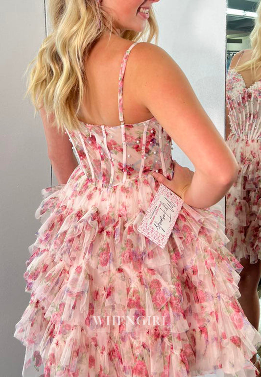 V Neck Pearls Beaded Multi Tiered Floral A-Line Back Zipper Short Homecoming DressOrdinarie pris Från $148.00 USDOrdinarie prisEnhetspris / per-