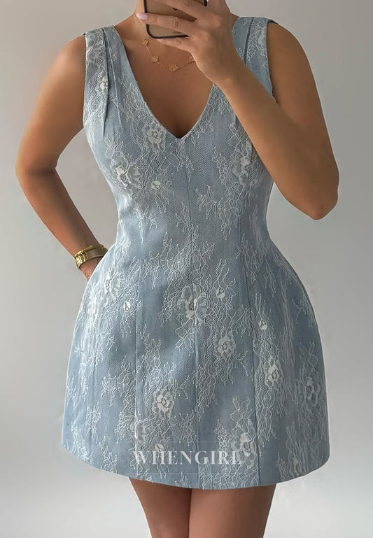Sky Blue V Neck Sleeveless Sheath Lace Short Homecoming DressOrdinarie pris Från $132.00 USDOrdinarie prisEnhetspris / per-