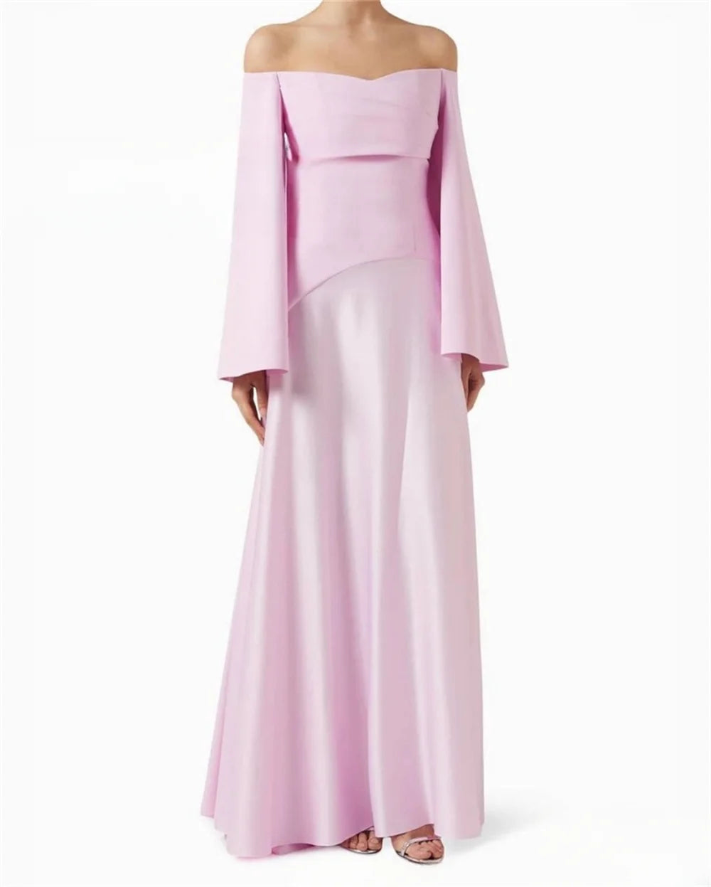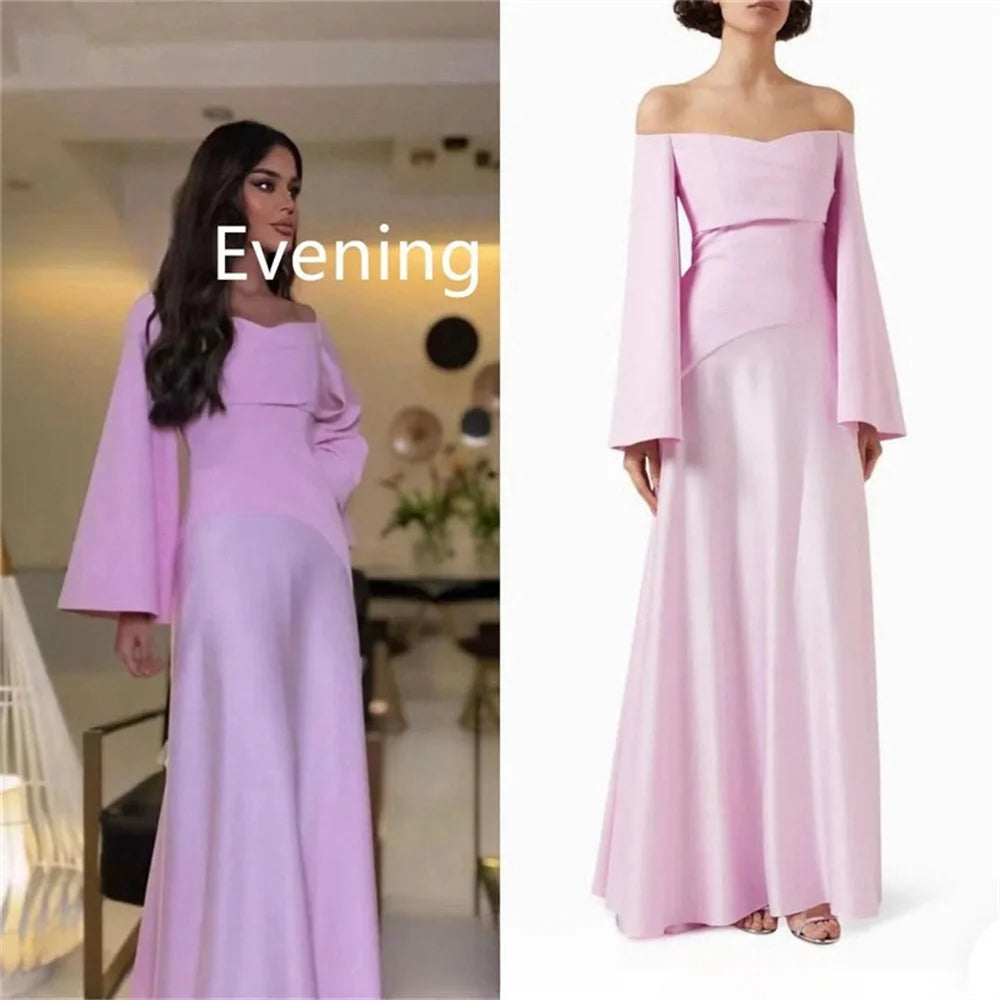 slim Taffeta Prom Dresses Modest A-line vestidos de noche Customized Long Sleeves Off the Shoulder Formal Evening 2024
