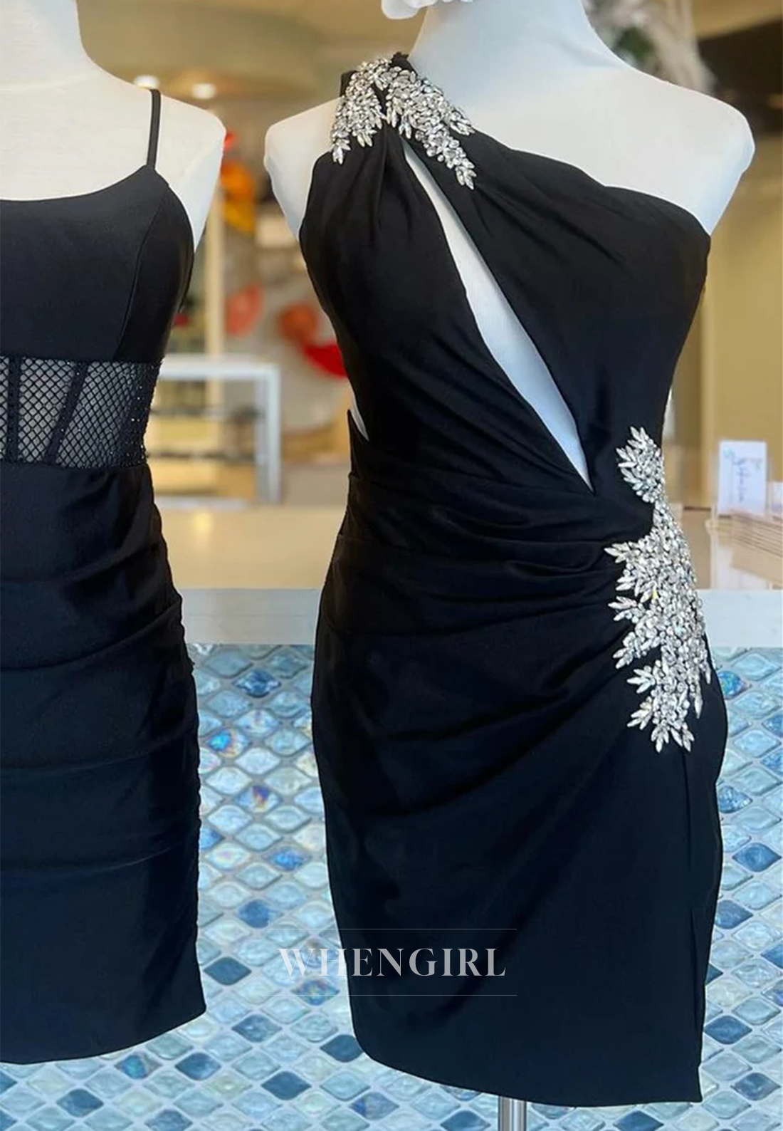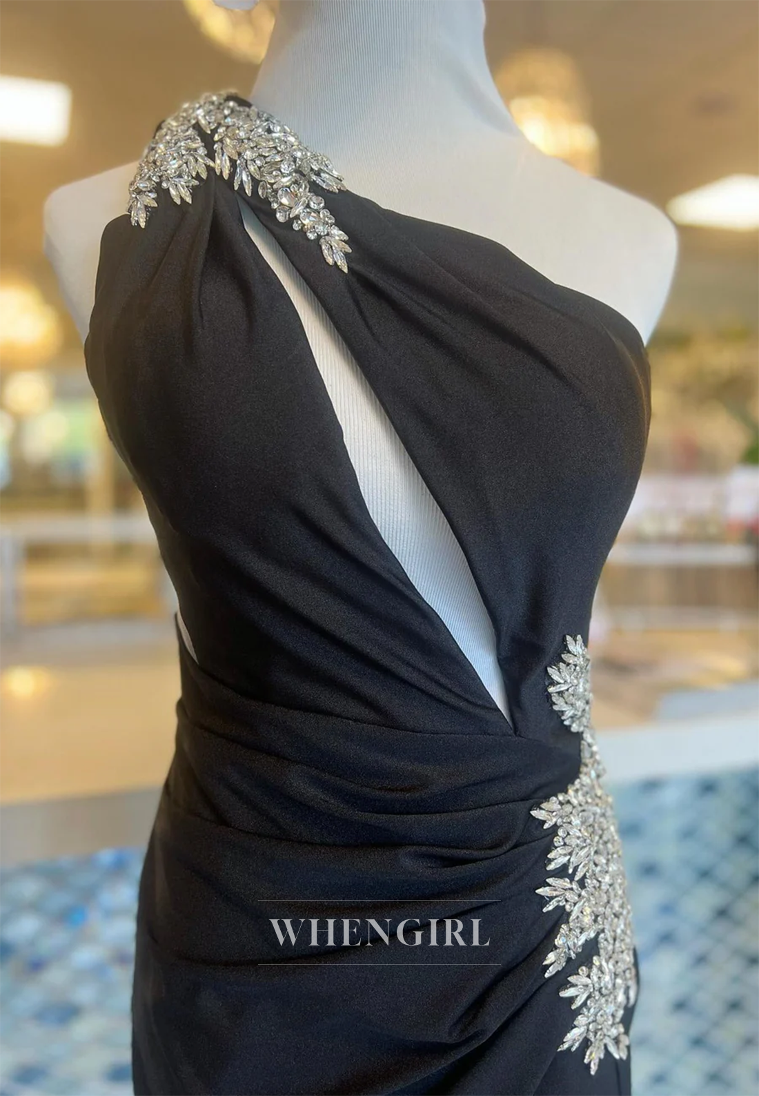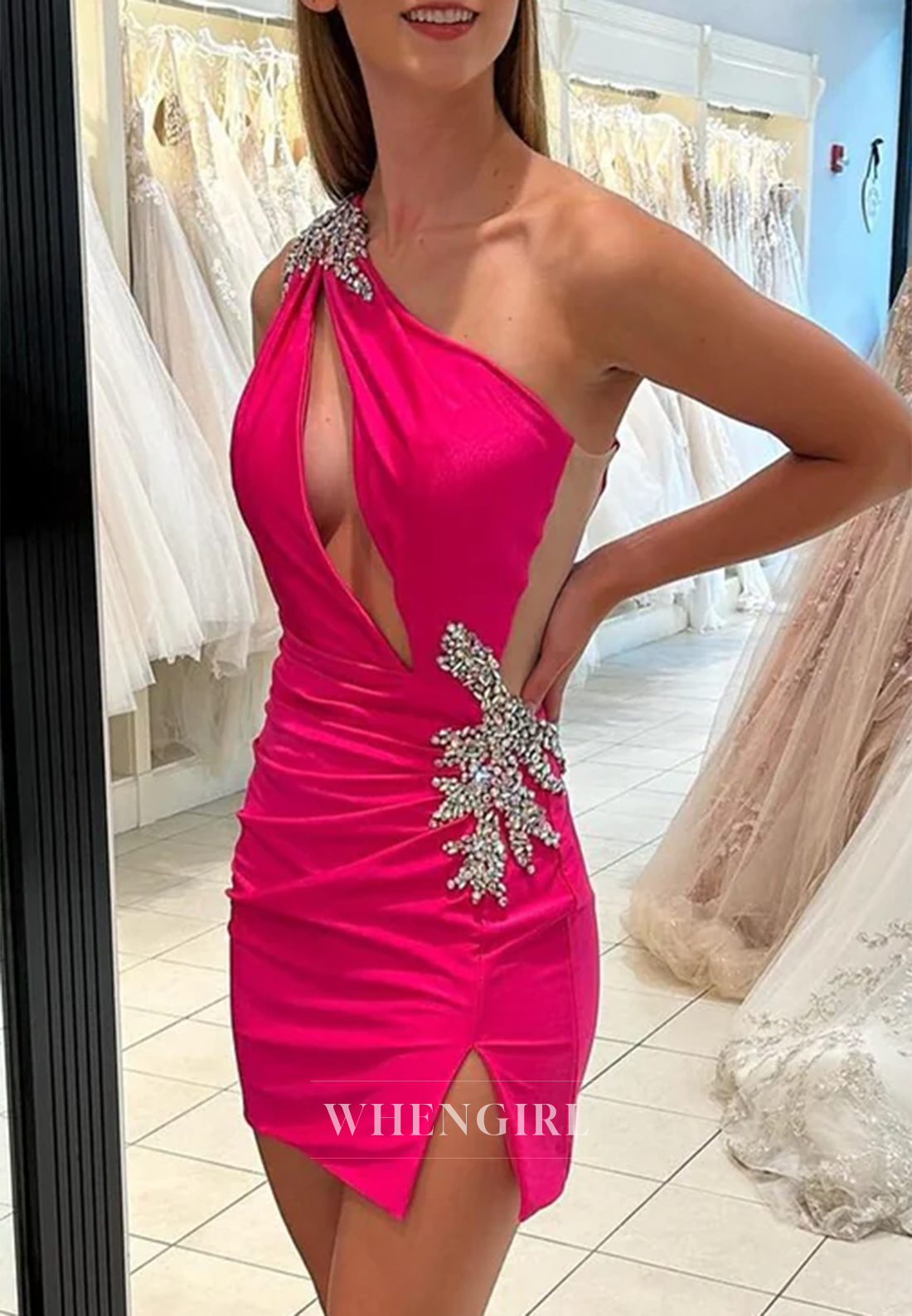 Sheath Pleated Sleeveless Cut Out One Shoulder Side Slit Back Zipper Homecoming Dress