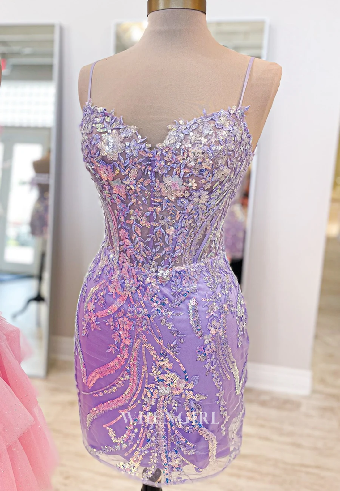 Sheath Sweetheart Sequins Spaghetti Straps Sleeveless Back Zipper Homecoming Dress x 1;