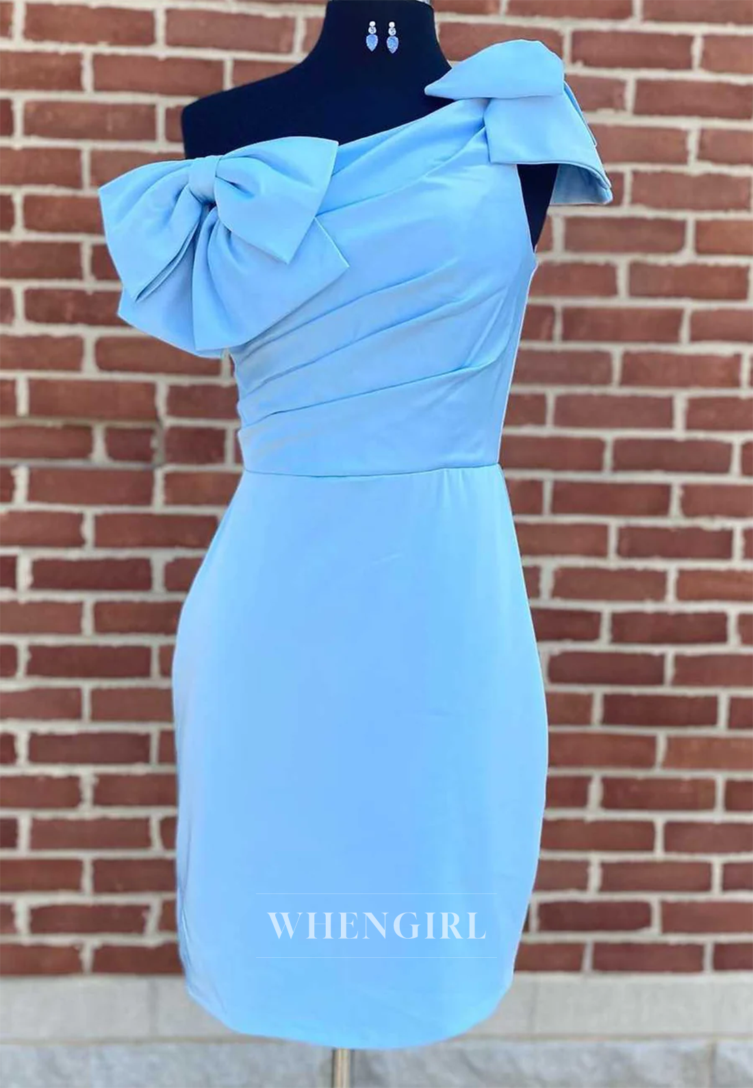 This sheath dress features a chic one-shoulder design accented with a stylish bowknot, adding a touch of elegance and charm. Its sleeveless cut ensures comfort and freedom of movement, while the short length makes it perfect for homecoming events. The streamlined silhouette offers a sophisticated and flattering fit, ideal for making a memorable impression.