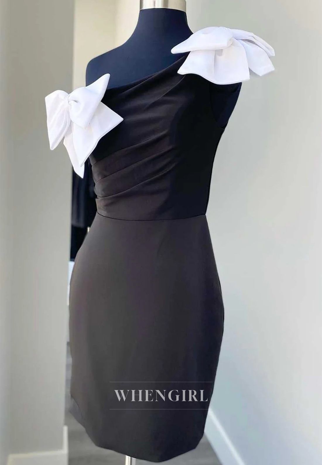 Sheath One Shoulder Bowknot Sleeveless Short Homecoming Dress x 1;