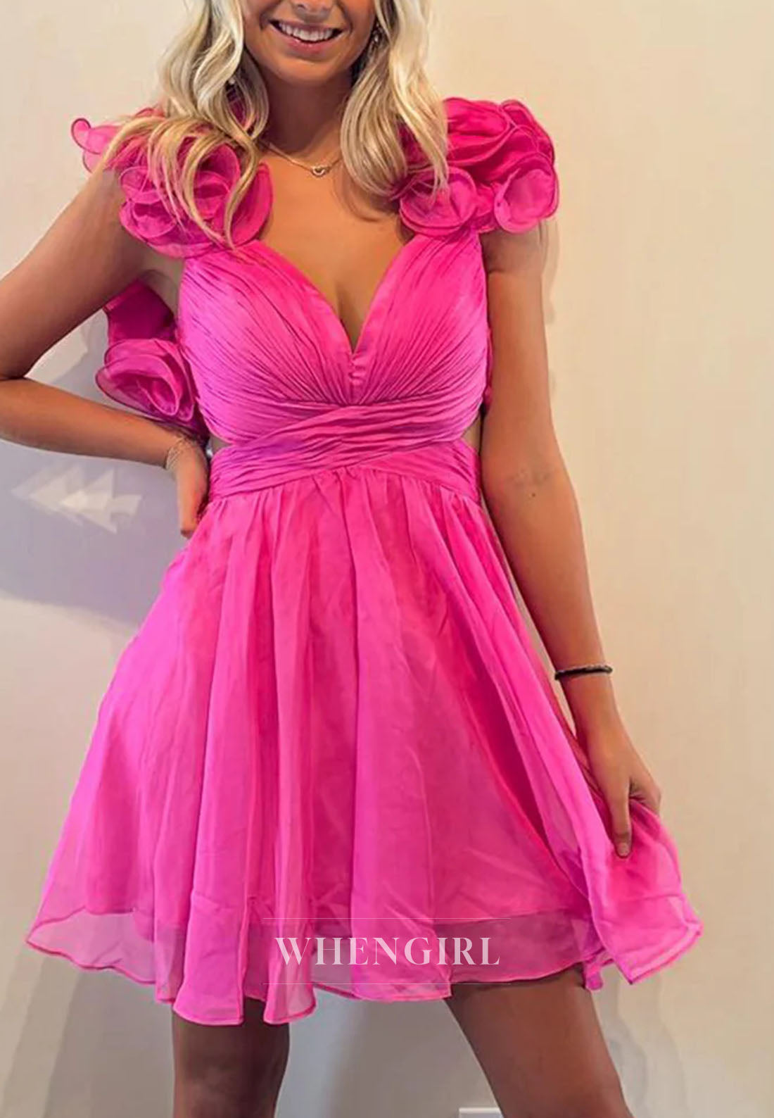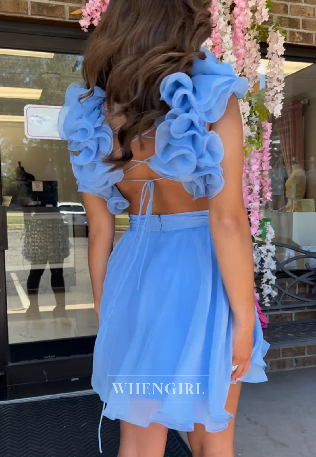 V Neck Sleeveless Cut Out Tie Back A-Line Short Chiffon Homecoming Dress