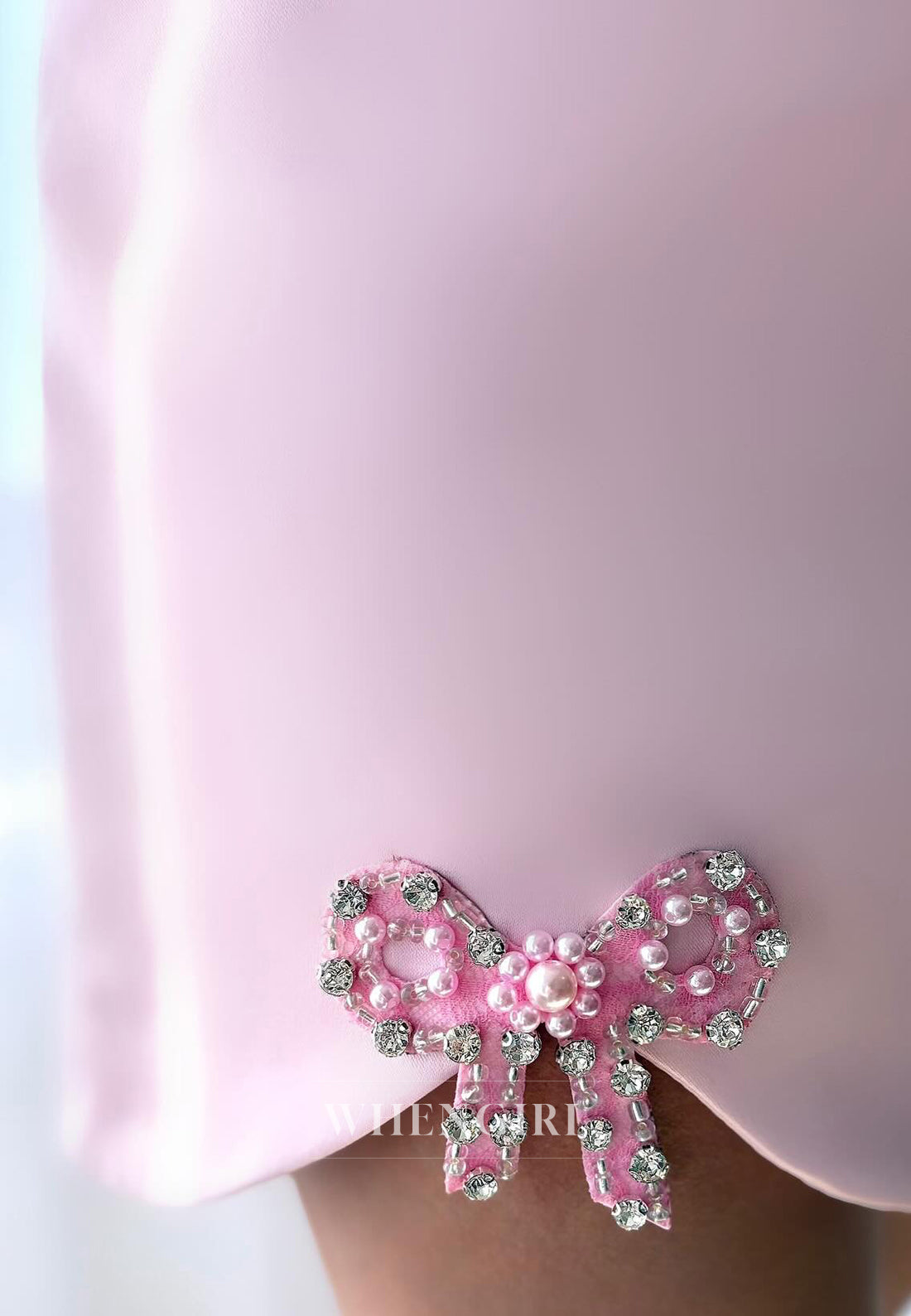 This sheath dress features a sleeveless design and a square neckline adorned with delicate beadwork for refined elegance. A charming bowknot detail adds a feminine touch, while the short length ensures a modern, flattering silhouette. Ideal for homecoming, this dress combines sophistication with youthful style.