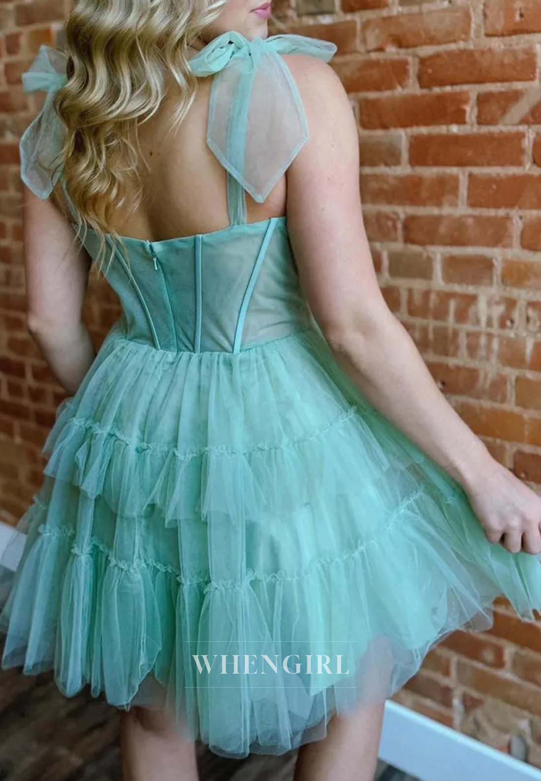 A-Line Ruffles Sleeveless Sweetheart Tulle Back Zipper Short Homecoming Dress