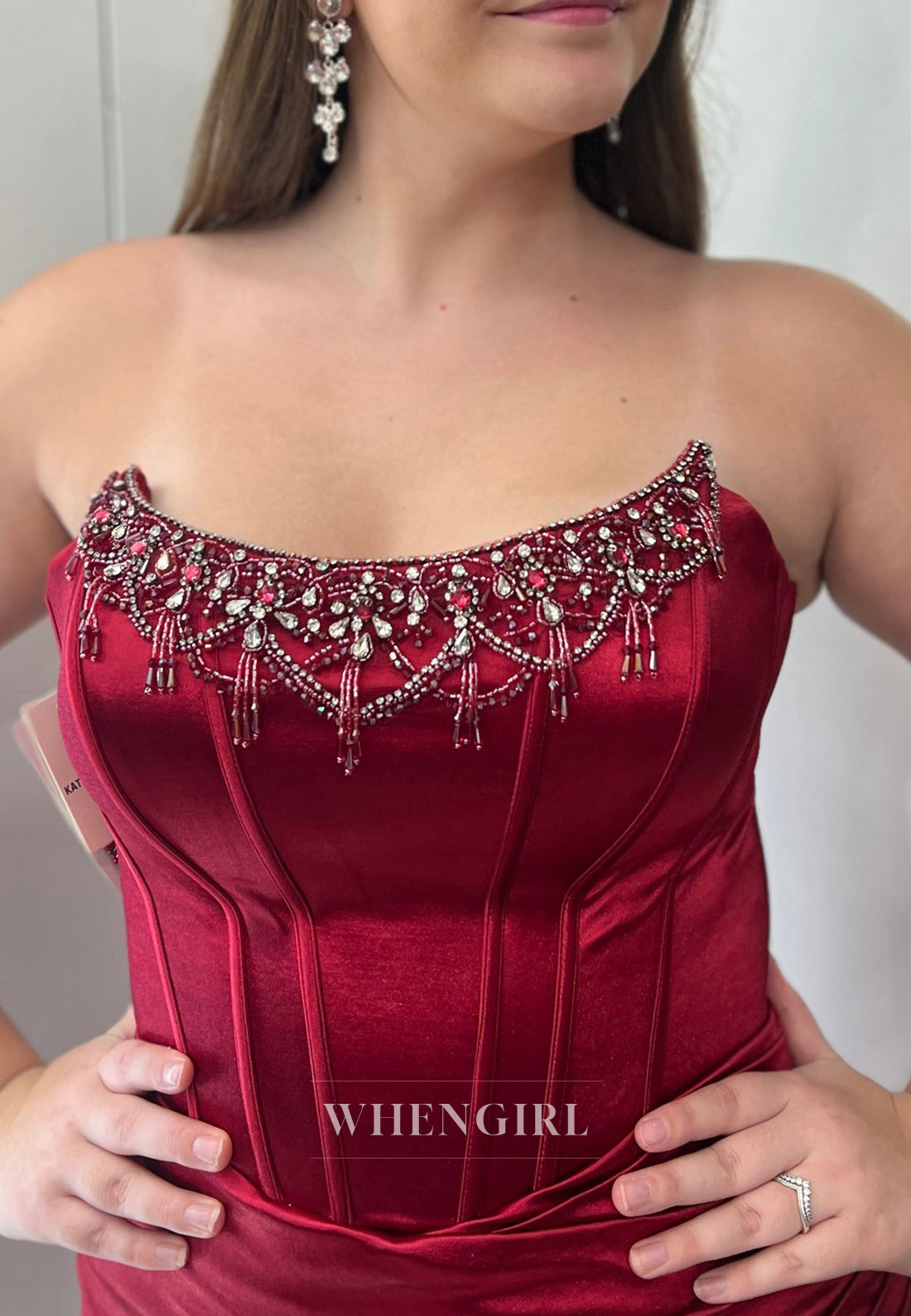 This Burgundy sleeveless sheath dress features a sophisticated bateau neckline and delicate beaded accents that enhance its pleated design. The back zipper provides a secure fit, while the short length offers ease of movement. Perfect for making you feel elegant and confident at your homecoming event.